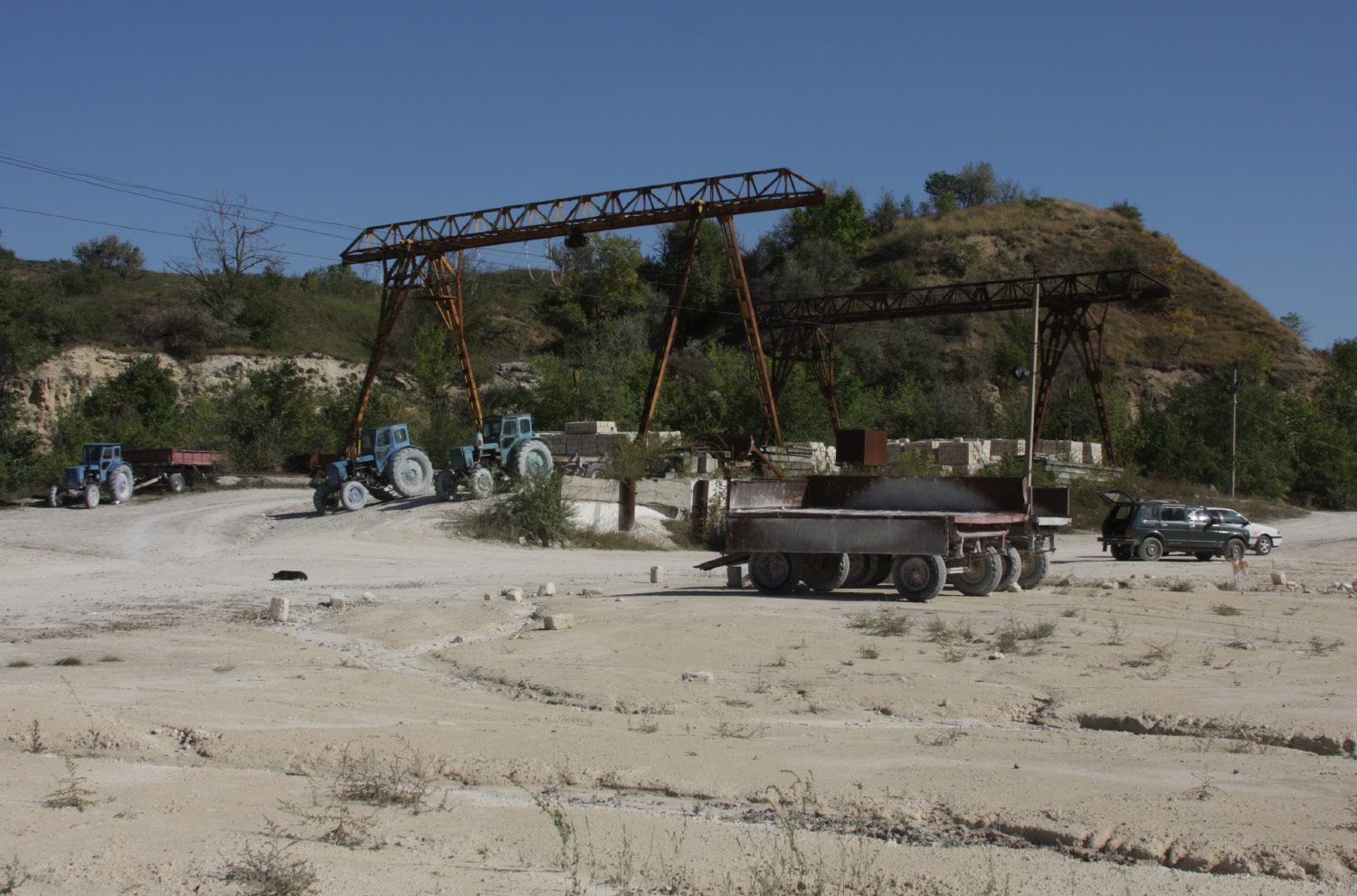 В Григориопольской шахте до рабочих забоев – более трех километров по подземному лабиринту. Так называют места, где непосредственно работают камнерезные машины и добывают камень. До поверхности земли – 55 метров, в штольнях сохраняется постоянная температура +16,5°С и повышенная, почти стопроцентная влажность.