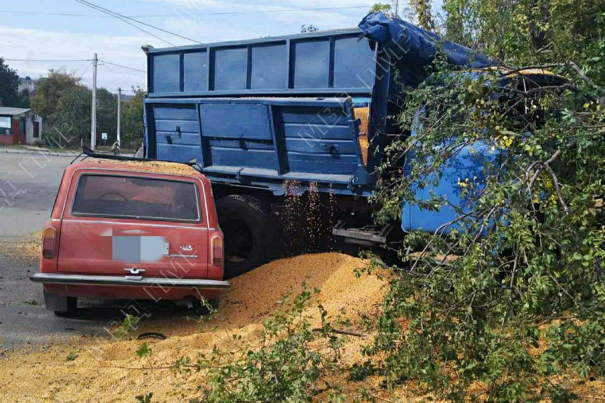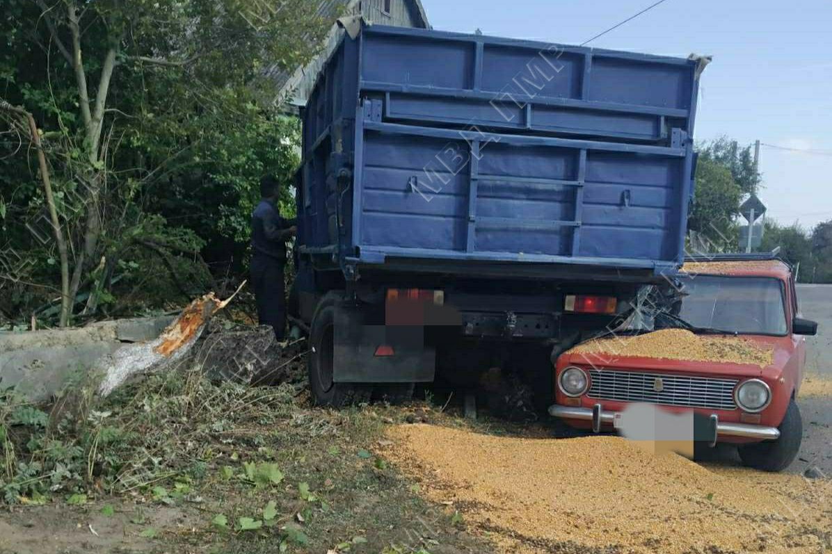 Пострадавших в ДТП нет – в салоне легковушки людей не было. Обе машины получили механические повреждения, также от удара искорёжен забор. Часть кукурузы из кузова рассыпалась на дорогу. Сейчас оценивается причинённый ущерб.
