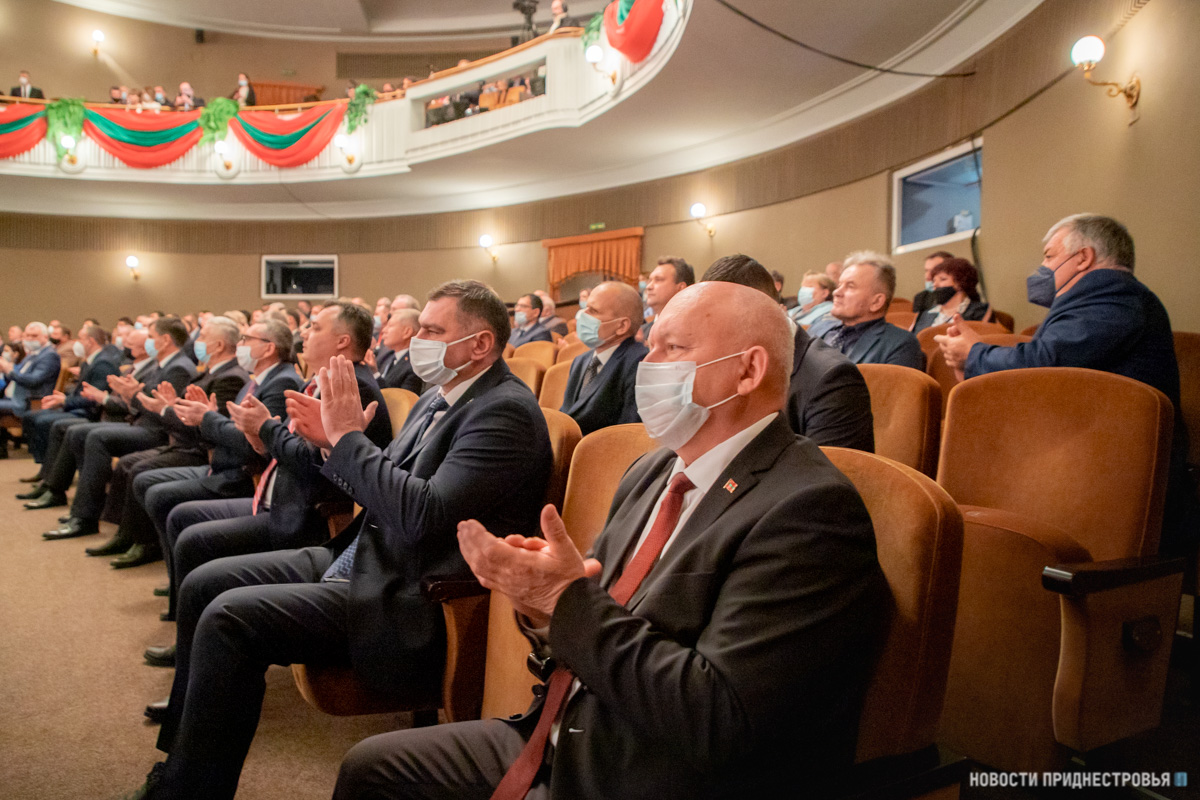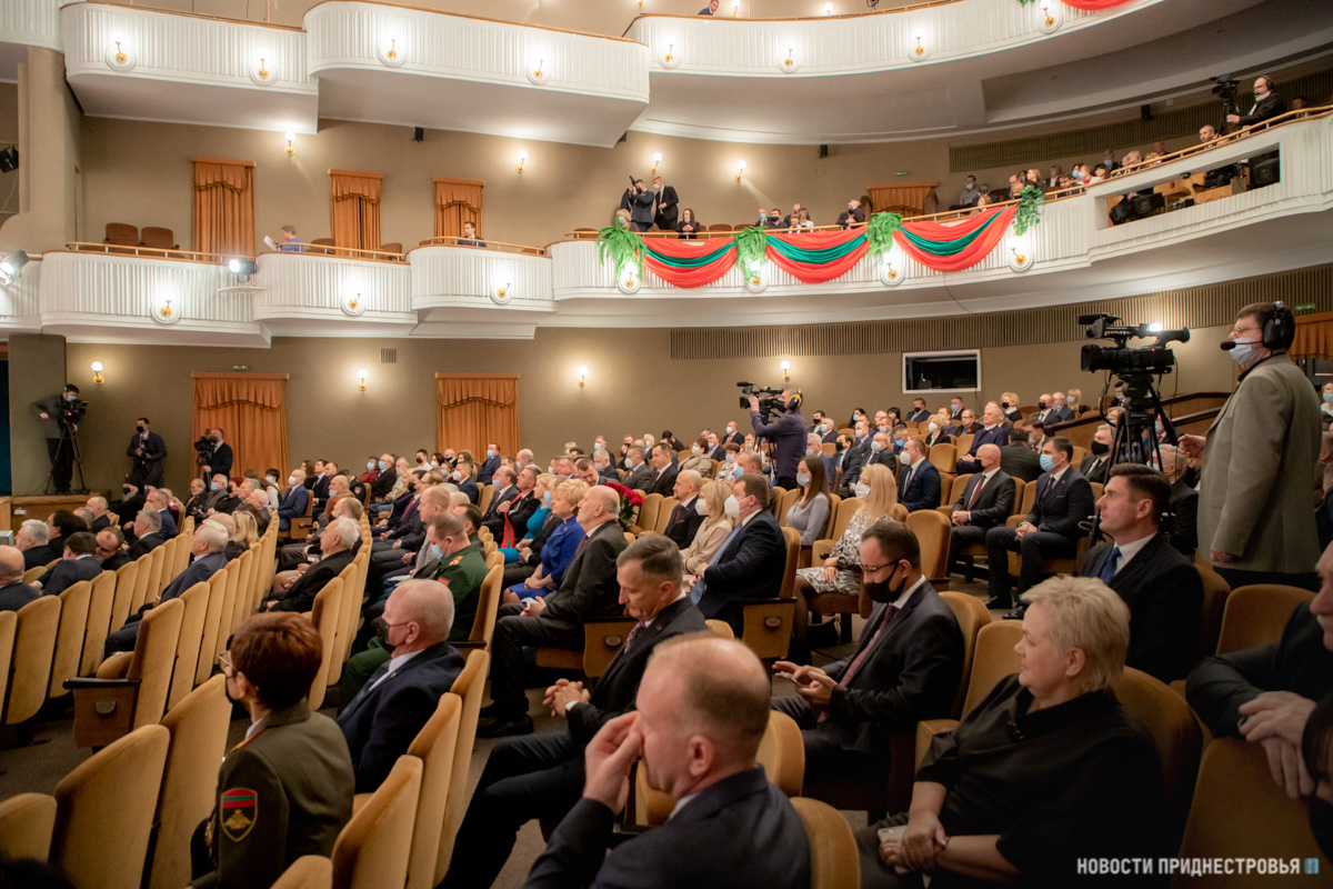 Вадим Красносельский в полдень прибыл в приднестровский государственный театр. Под фанфары оркестра и аплодисменты зрителей вновь избранный глава государства по красной ковровой дорожке заходит в зрительный зал, занимает своё место. Всё готово к торжественной церемонии инаугурации.