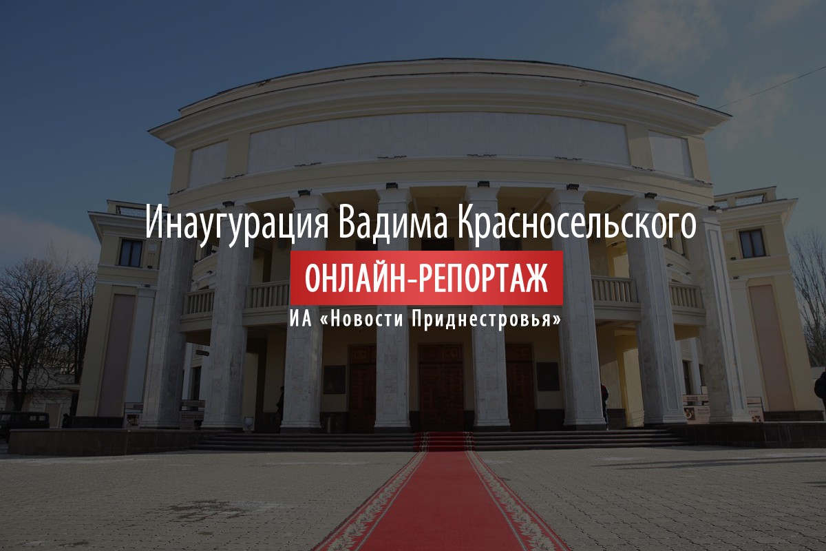 11:30 - Сегодня в зале Приднестровского государственного театра драмы и комедии им. Н.С. Аронецкой состоится инаугурация новоизбранного президента ПМР Вадима Красносельского. В ходе торжественной церемонии глава государства принесёт клятву на Конституции на верность народу ПМР. С этого момента Вадим Красносельский официально вступит в должность президента Приднестровской Молдавской Республики.