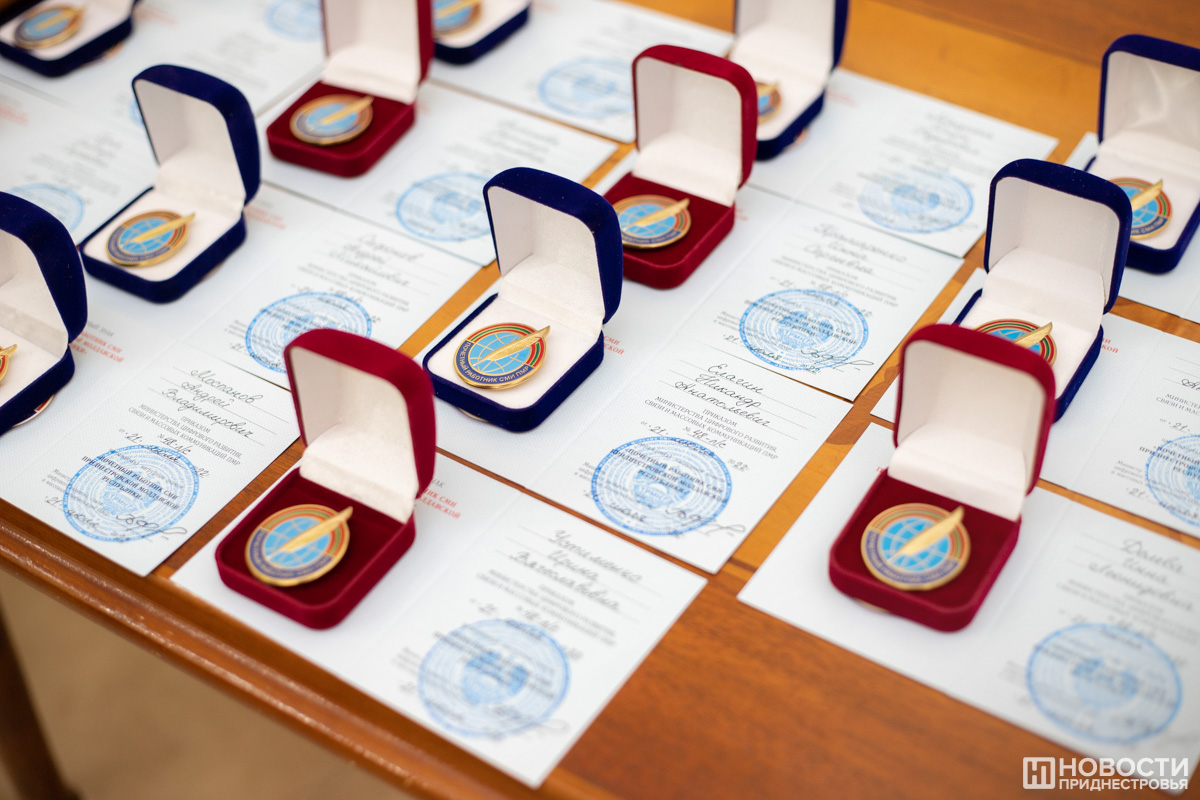 В ходе торжественного собрания журналистов «Ольвии-пресс» и «Новостей Приднестровья» наградили госнаградами, а также грамотами и благодарственными письмами Верховного Совета и Министерства цифрового развития. Ряду специалистов присвоили звания «Почётный работник СМИ».