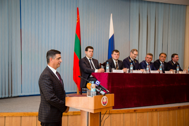 От имени посла Российской Федерации в РМ Фарита Мухаметшина коллектив Министерства иностранных дел Приднестровья поздравил старший советник посольства Петр Уржумов.