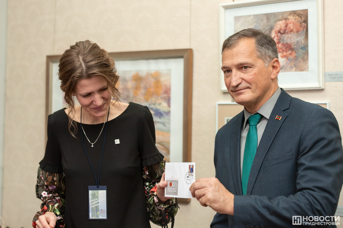 На выставке также состоялись презентация марочного конверта, посвященного 30-летию Союза художников Приднестровья, и его памятное гашение. Отметим, что на конверте размещена марка с изображением картины приднестровского художника А. Колчака «Мастер». Она была выпущена в составе серии «Приднестровский государственный художественный музей» в 2018 году.
