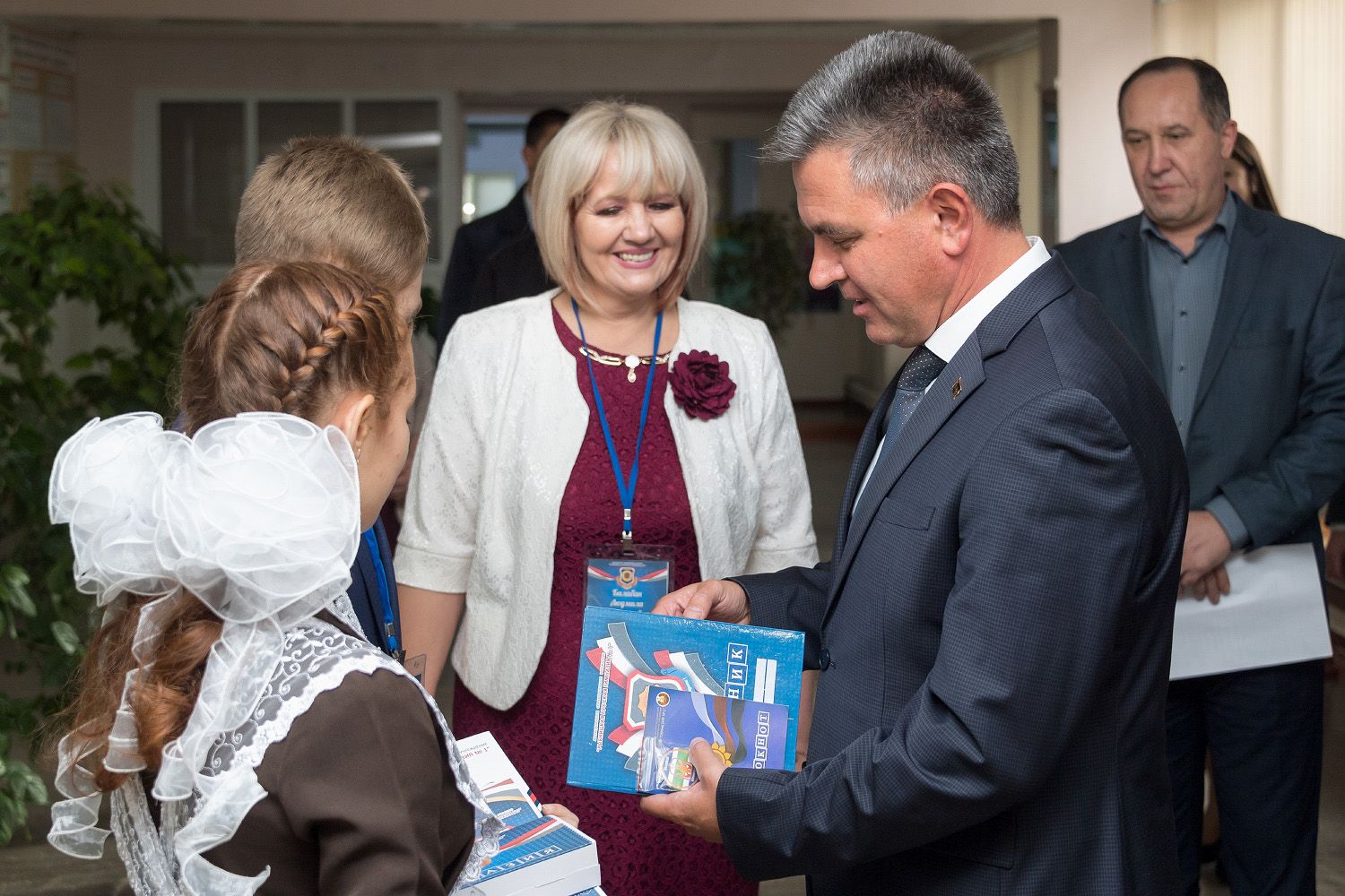 Ремонта в этом году дождались и 4 образовательных учреждения города и района. Президент сегодня побывал в городской школе №9. Здесь отремонтировали кровлю и фасад здания. Специалисты обновили освещение школьных помещений. На выполнение всего объема работ потратили чуть менее полутора миллионов рублей. Глава государства осмотрел классные комнаты, спрашивал о наполняемости школы. Руководитель учебного заведения рассказала, что девятая – самая большая школа района. В ней получают знания более пяти сотен ребят.