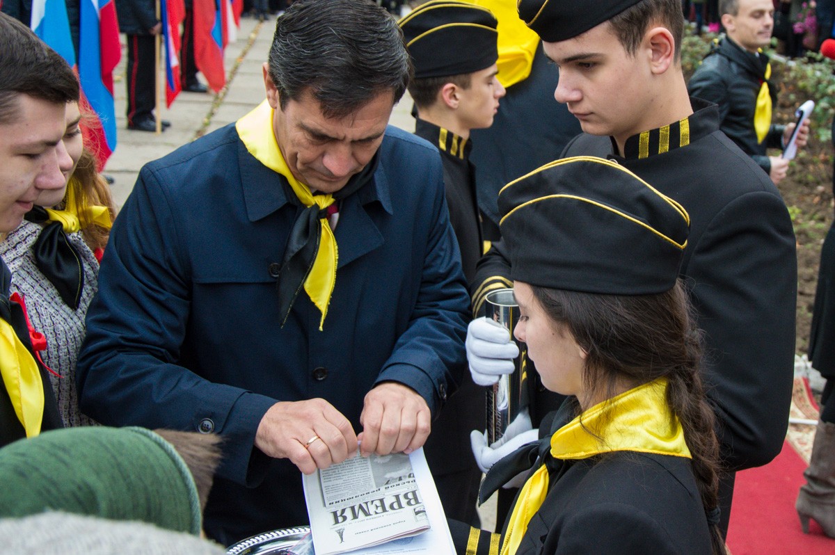 В далёком 1977 году капсулу с посланием в Бендерах заложили ученики 10 «Б» класса второй школы. Сегодня многие из них присутствовали на торжественном мероприятии. Право огласить текст обращения предоставили бывшей ученице 5 «А» класса средней школы №2 Светлане Болоткиной-Кухарь, которая подписала послание от имени молодёжи Бендер, и Александру Гынку - бывшему ученику 2 «Б» класса средней школы №2, участнику тех событий.