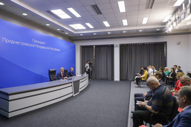 Решение о том, кто из сотрудников будет представлять на значимом мероприятии средства массовой информации, принимали главные редакторы. В конференц-зал в итоге приглашены тридцать журналистов и два десятка технических специалистов. В большинстве своем это представители приднестровских масс-медиа. Из зарубежных, учитывая коронавирусные обстоятельств, прибыла лишь корреспондент молдавского информационного агентства Sputnik Молдова. Собеседники главы государства протестированы. Это мера, необходимая для обеспечения безопасности всех участников встречи.