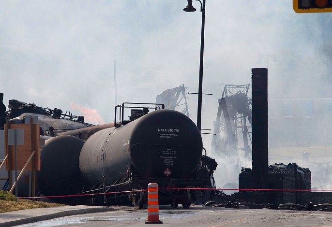 Из-за схода поезда с рельсов в Канаде разлилась неочищенная нефть