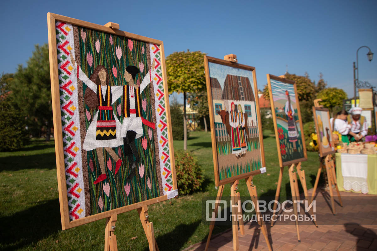На аллеях парка разместились народные умельцы со всей республики. Так, педагог Дубоссарской детской художественной школы Динара Турсунова привезла гобелены с молдавскими мотивами.