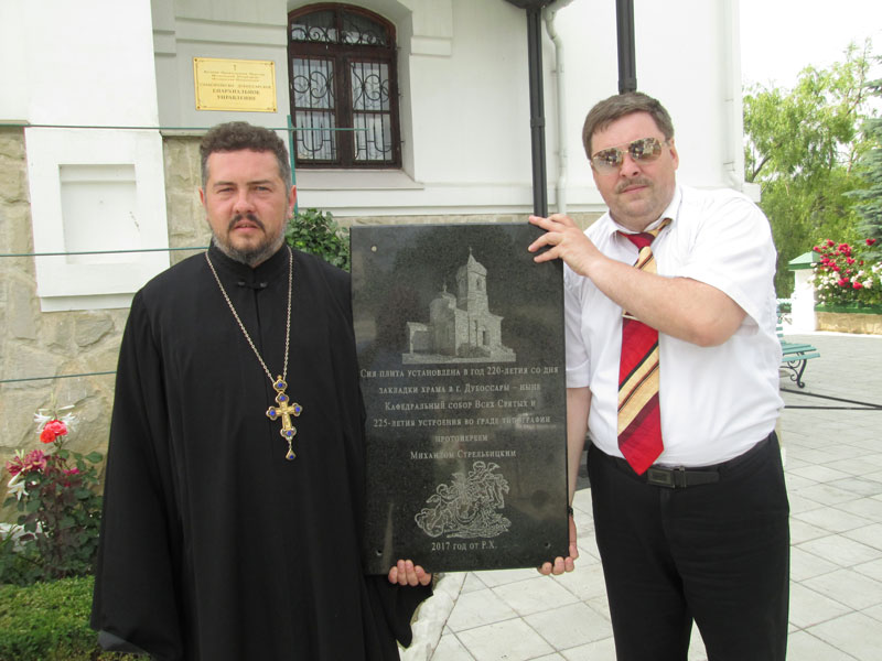 Так, к 220-летию со дня закладки Всехсвятской в Дубоссарах, сейчас это кафедральный собор Всех Святых, там установят памятную плиту. Накануне состоялась передача этого мемориала представителю Дубоссарского благочиния протоиерею Георгию Лисовскому.