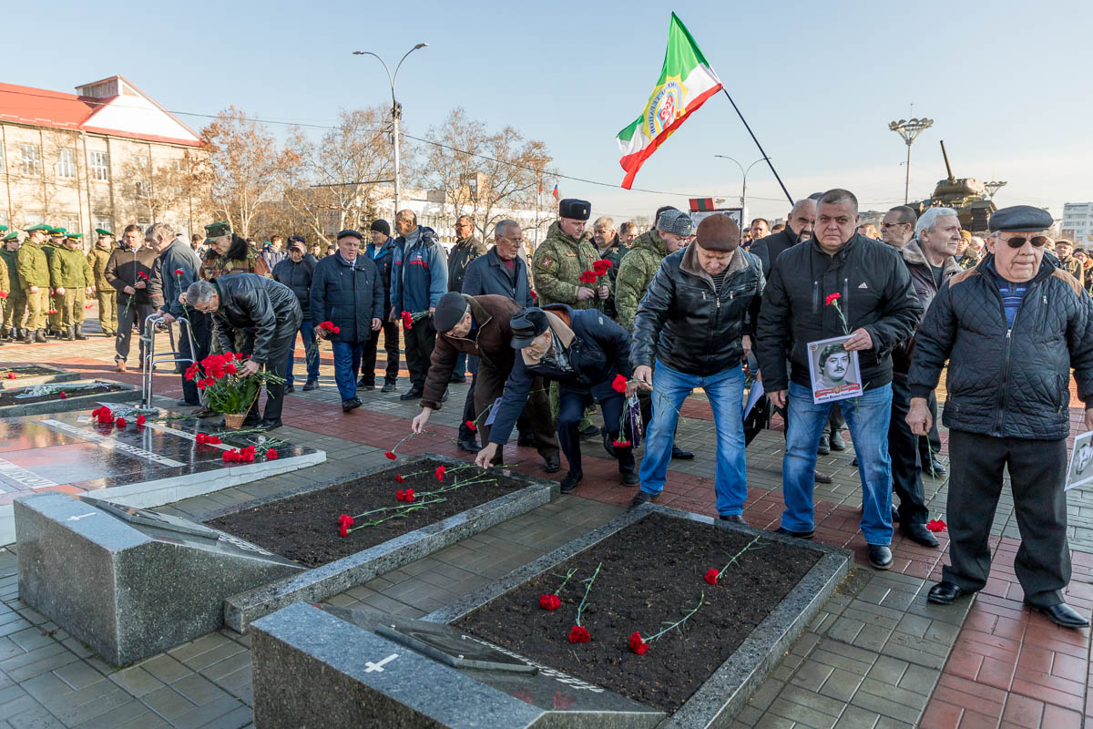 В память о погибших бойцах ТСО была объявлена минута молчания. К могилам павших защитников легли живые цветы.