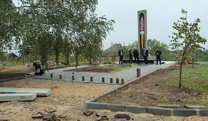 Сейчас специалисты укладывают новую тротуарную плитку, выполняют облицовку постамента. Вскоре будет сделана ночная подсветка памятного знака.