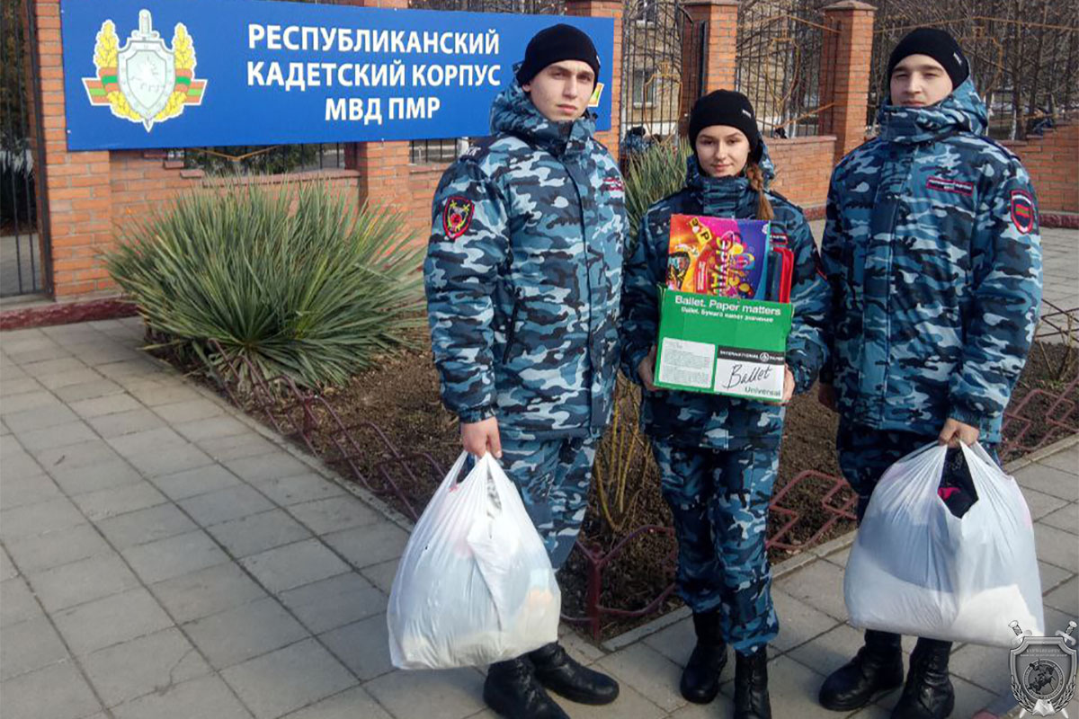 Через волонтёрскую организацию «Мы рядом!» кадеты узнали, кому и какая нужна помощь. Так, например, одной из семей понадобились канцтовары для школьника. Мама Ольга с детьми живёт у родственников. Старший сын, ему 8 лет, ходит в одну из Тираспольских школ. Кадеты РКК передали семье беженцев тетради, ручки, карандаши, альбомы для рисования и другие канцелярские товары.