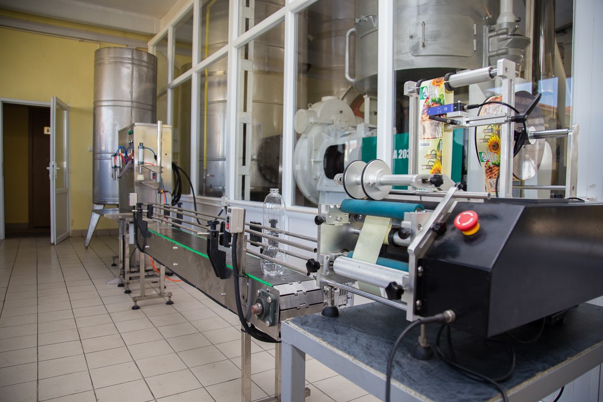«Оно проходит нейтрализацию, потом гидратацию, дальше — в отбеливатель, где добавляется отбеливающая глина — абсорбент, который снимает все гербициды, тяжёлые металлы. После этого масло фильтруется от глины и ещё раз идёт на кизельгуровый фильтр, потом снова в бак отстоя, где оно стоит некоторое время, охлаждается и поступает на линию дезодорации. После охлаждения — последний патронный фильтр и уже потом поступает в ёмкость готовой продукции, где идёт на линию розлива. Мы, кстати, сами выдуваем бутылки, у нас три формы — для премиум-класса, для высшего сорта и 5-литровая бутылка», — рассказывает Николай Неделков.