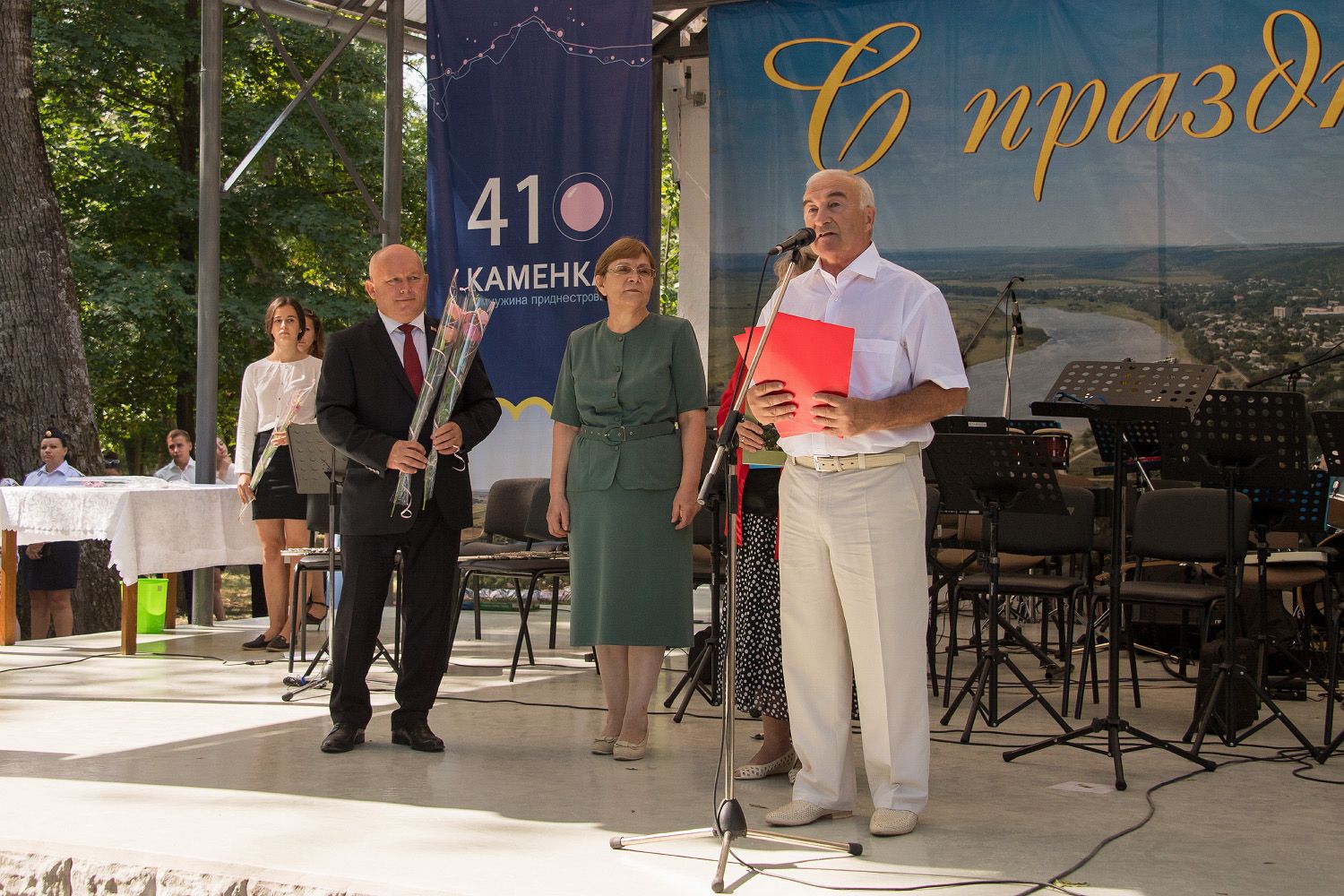 В парке сегодня звучали исторические факты и сведения о сегодняшнем дне Каменского района, который в нынешнем году, к примеру, стал лидером по урожайности. Были названы имена каменчан, названия организаций и предприятий, заслуживших слова особой благодарности. На праздничную сцену поднимались представители различных поколений и сфер деятельности. Награды получили и победители конкурсов, объявленных в преддверии праздника. Музыкальный подарок каменчанам подготовил оркестр Главного штаба Вооруженных сил ПМР под руководством заслуженного деятеля искусств Виталия Войнова.