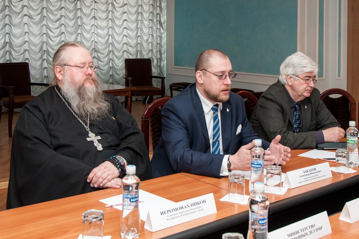 Советник директора Канцелярии иеромонах Никон предложил в этом году провести ряд круглых столов, конференций, посвящённых урокам прошлого, восстановлению исторических традиций и объединения народов с Россией.