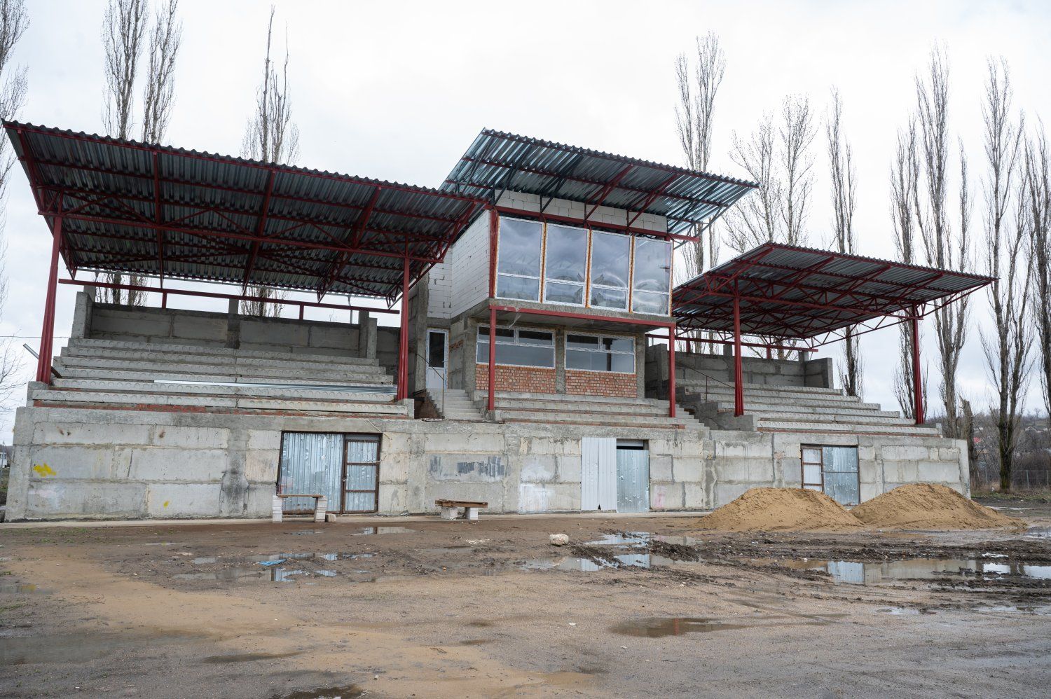 В прошлом году на выделенные из Фонда капвложений 4 миллиона рублей возвели трибуны. Продуманы и подтрибунные помещения, есть судейские вышки. В проекте также комментаторские, медчасть, кафе, санузел.
