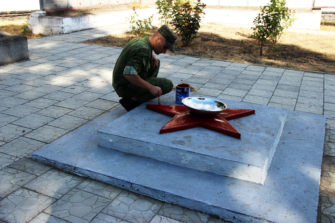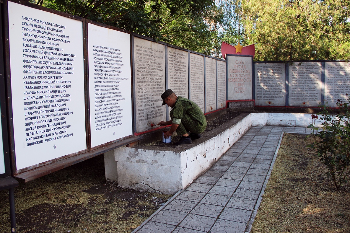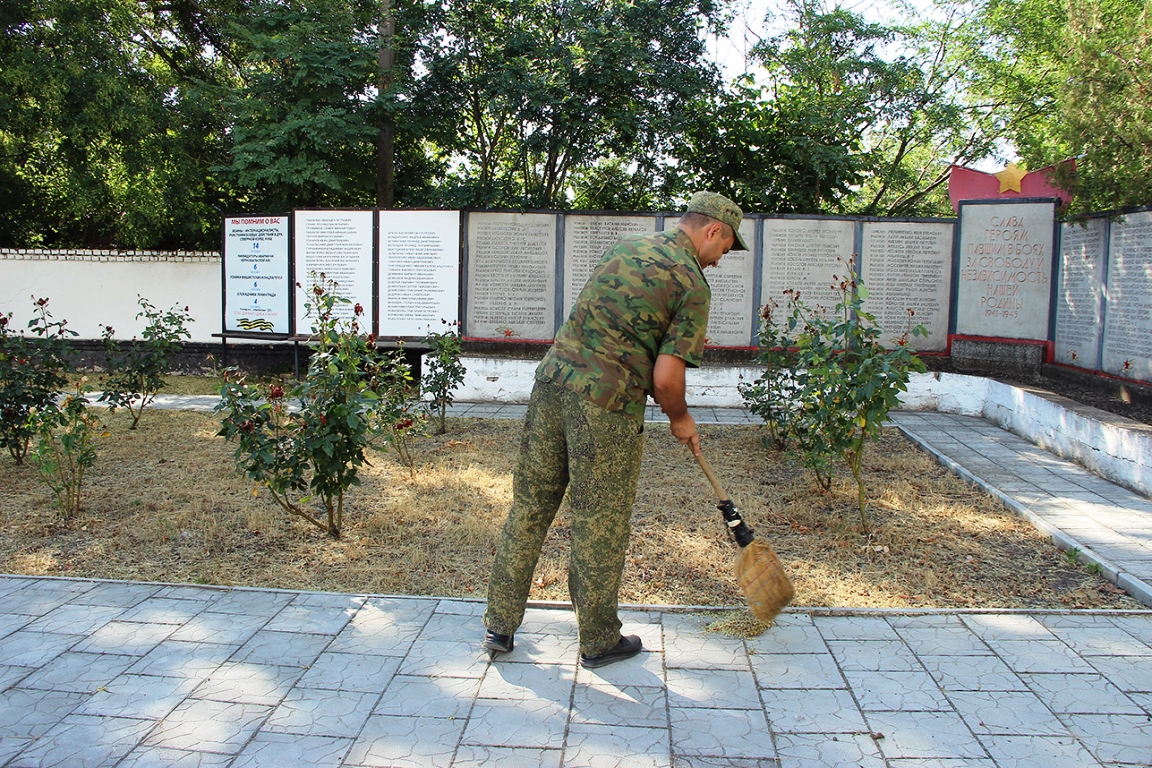 Казаки-пограничники расчистили от мусора площадку перед памятником советскому солдату, убрали цветочные клумбы и покрасили звезды на мемориальных плитах, где увековечены имена погибших героев, сообщается на сайте Министерства госбезопасности ПМР.