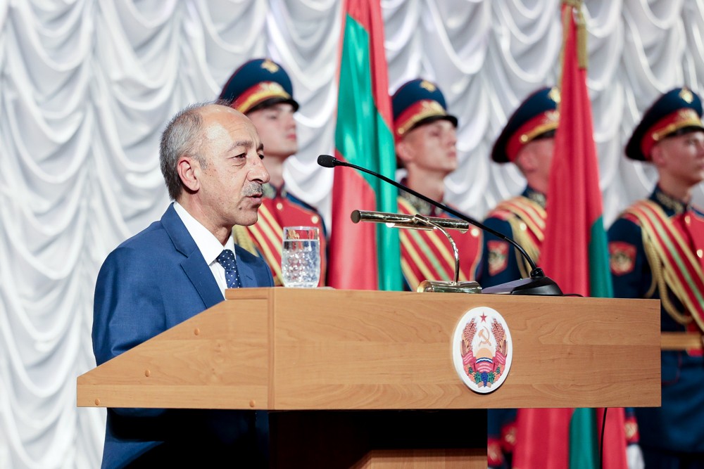 Тирасполь, 1 сентября. /ИА «Новости Приднестровья»/. В ходе прошедшего сегодня в Тирасполе торжественного собрания по случаю Дня Республики приднестровцев поздравил первый заместитель председателя комитета Госдумы РФ по делам СНГ, евразийской интеграции и связям с соотечественниками Казбек Тайсаев.