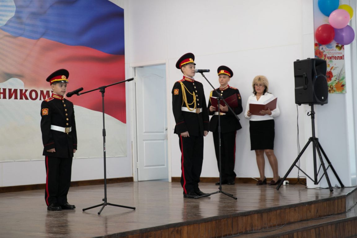 В честь праздника для педагогов подготовили концертную программу. Подготовили видеоролики, исполнили песни и стихи. Завершился концерт выступлением хора суворовцев, которые исполнили специально подготовленную к праздничному дню композицию.