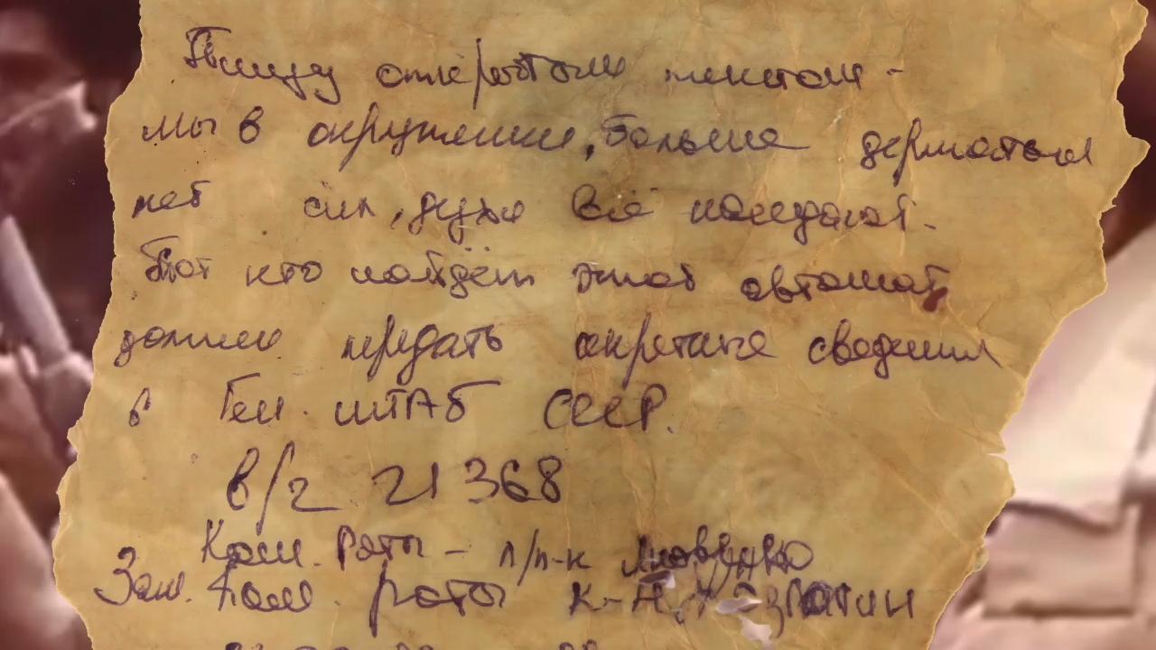 Завершают записку номер части, имена командира и замкома роты, а также дата, вплоть до точного времени, когда солдаты так нуждались в поддержке. Вот только само послание так и не достигло адресата. Спустя годы оно стало исторической ценностью. Из нескольких строк специалисты собирают сведения по крупицам, пытаясь восстановить ход событий того дня.