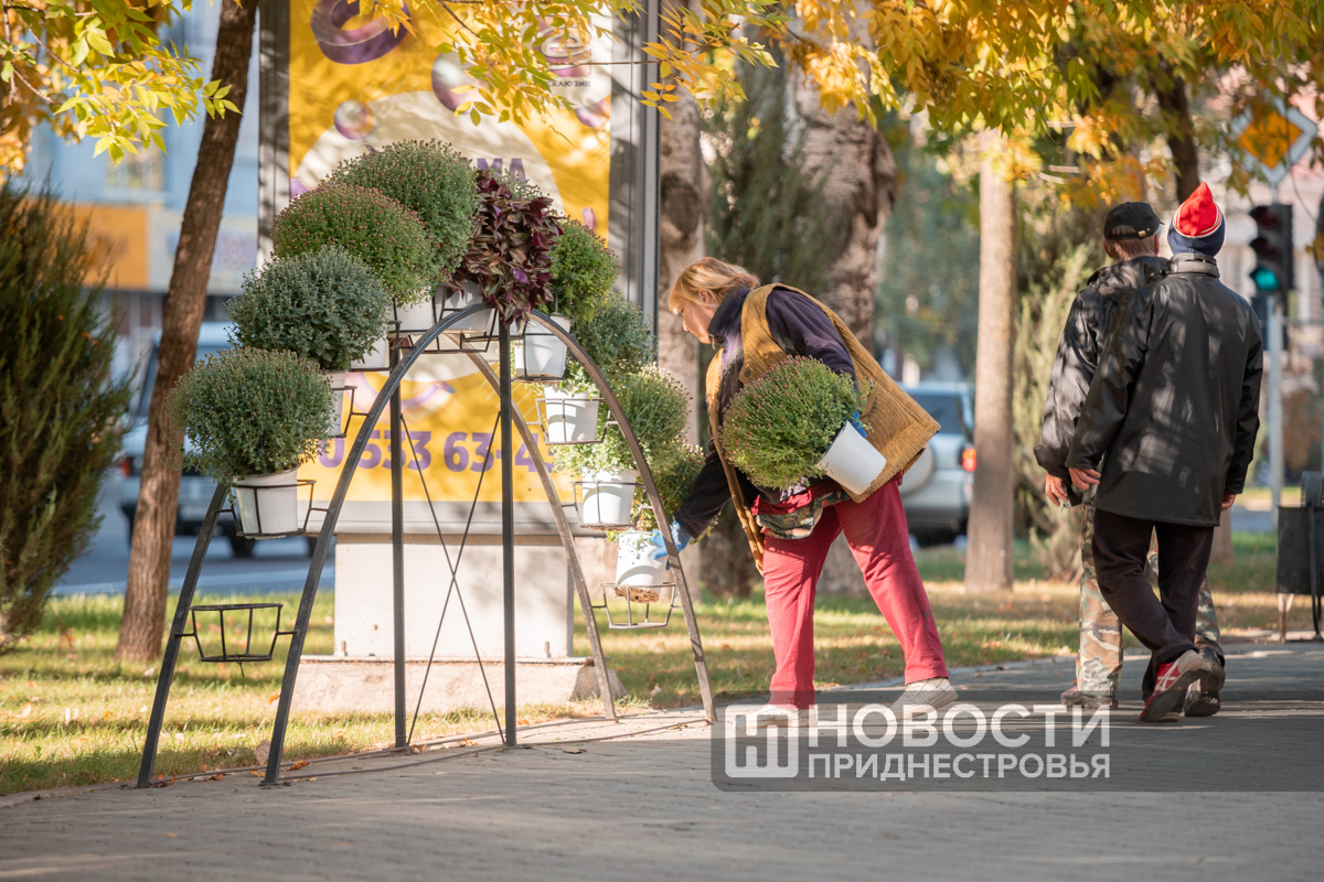 Тирасполь, 11 октября. /Новости Приднестровья/. В Тирасполе на улицах города теплолюбивые сурфинии заменили на морозоустойчивые хризантемы и традесканции. Сегодня представители столичного МУП «Спецавтохозяйство» установили в цветочных арках новые растения. В течение осени порядка двух тысяч цветущих кустов будут украшать центральную улицу 25 Октября и улицу Юности в микрорайоне Октябрьский.