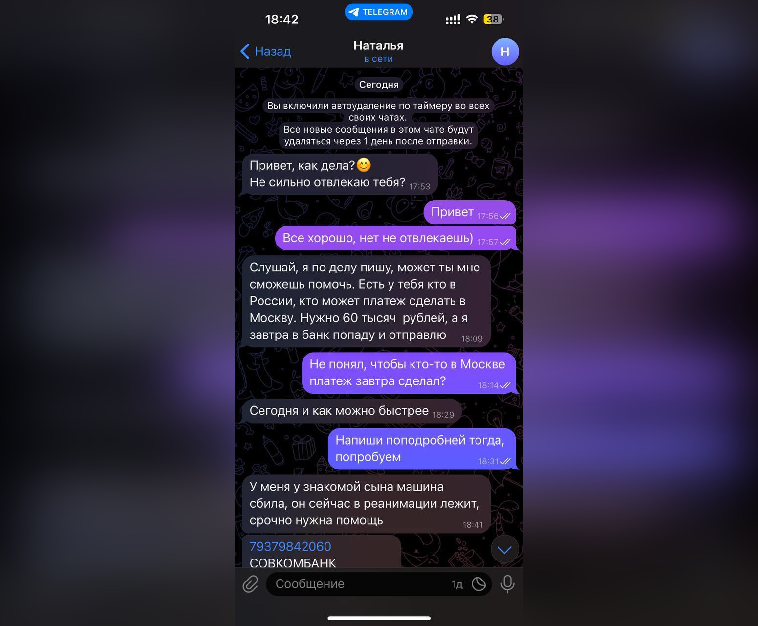 В переписке говорят, срочно нужны деньги. Что важно, платёж обязательно должен пройти по российской карте. Мол, в Москве знакомые попали в больницу, им требуется помощь. Как только адресат начинает задавать уточняющие вопросы, диалог и аккаунт удаляют.