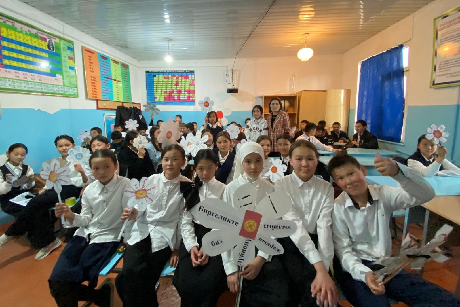 Ученики и педагоги из разных стран мира, увидев друг друга на экране, подняли ромашки со словами «Вместе мы делаем мир ярче!» на родных языках и зажгли фонарики, как символ света и огонька внимания к новым друзьям. Ученики школы с. Кицканы с особой гордостью держали свою ромашку, сердцевиной которой был флаг Приднестровской Молдавской Республики.
