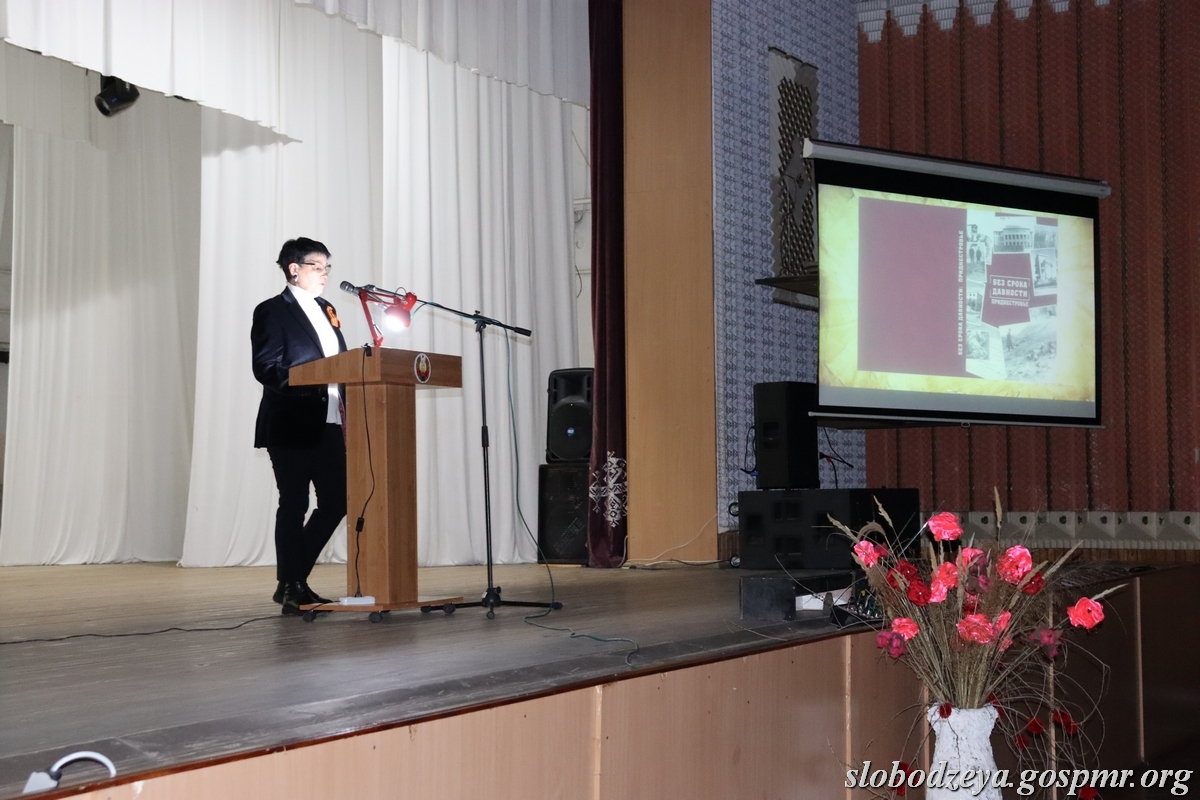 После презентации с патриотическими номерами выступили местные артисты. В фойе ДК работала баннерная выставка Слободзейского исторического музея «Великий подвиг на Днестре. Весна-лето 1944 года».