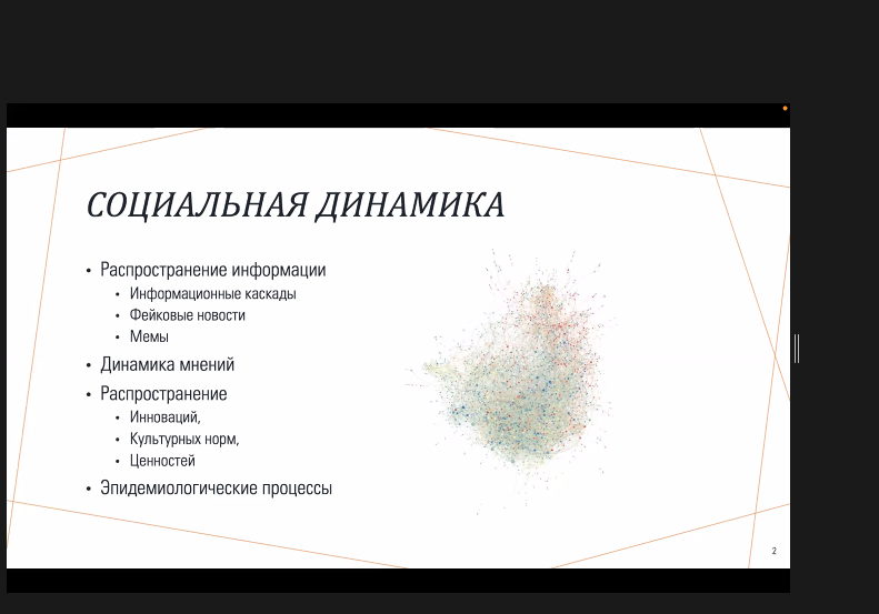 Ещё одна ветвь – изучение динамики мнений. Учёные применяют точные формулы, чтобы уловить колебания такого эфемерного и в то же время важного явления как человеческое мнение по той или иной теме. Они анализируют, как люди меняют свою позицию под влиянием своего окружения, соцсетей, СМИ. Например, 10 лет назад провели исследование того, как быстро человек зарегистрируется в Фейсбуке в зависимости от степени присутствия там его знакомых и друзей.