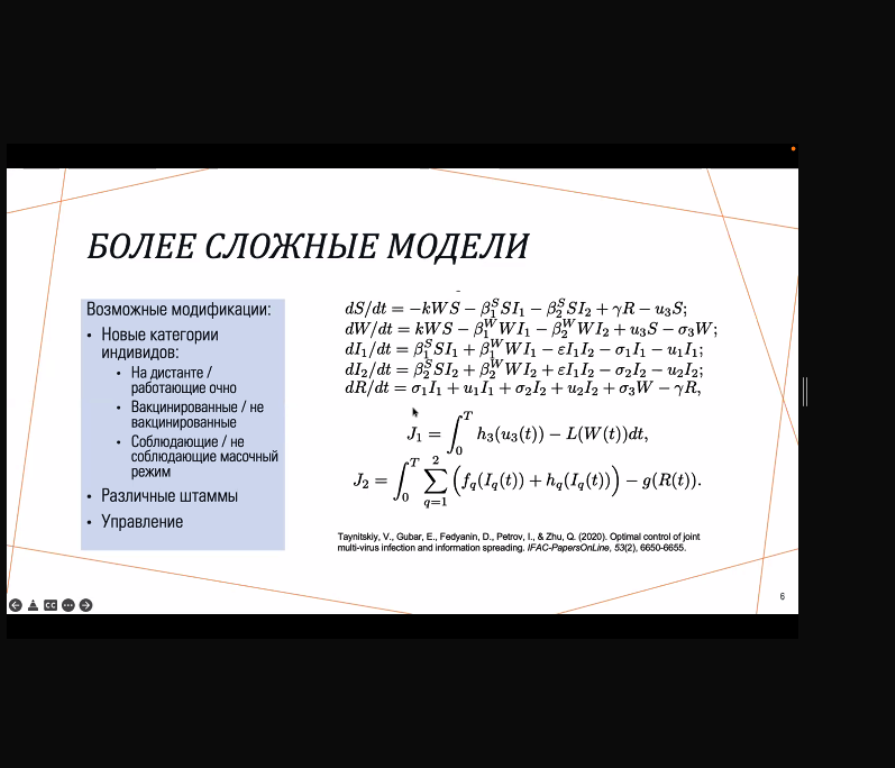 В качестве простейшего примера, как работают точные формулы для расчёта, казалось бы, непредсказуемых явлений, московский лектор привел SIR-модель. Это математическая модель, на основе которой ещё в начале прошлого века учились прогнозировать развитие эпидемий. О ней же вспомнили и 100 лет спустя, когда случился коронавирус. Впрочем, сегодня есть уже более современные и сложные алгоритмы, которые государства используют для изучения и противодействия пандемии.