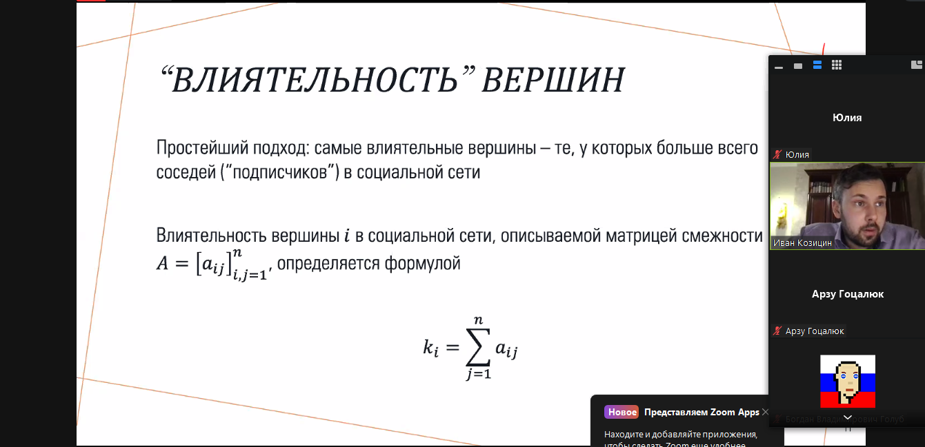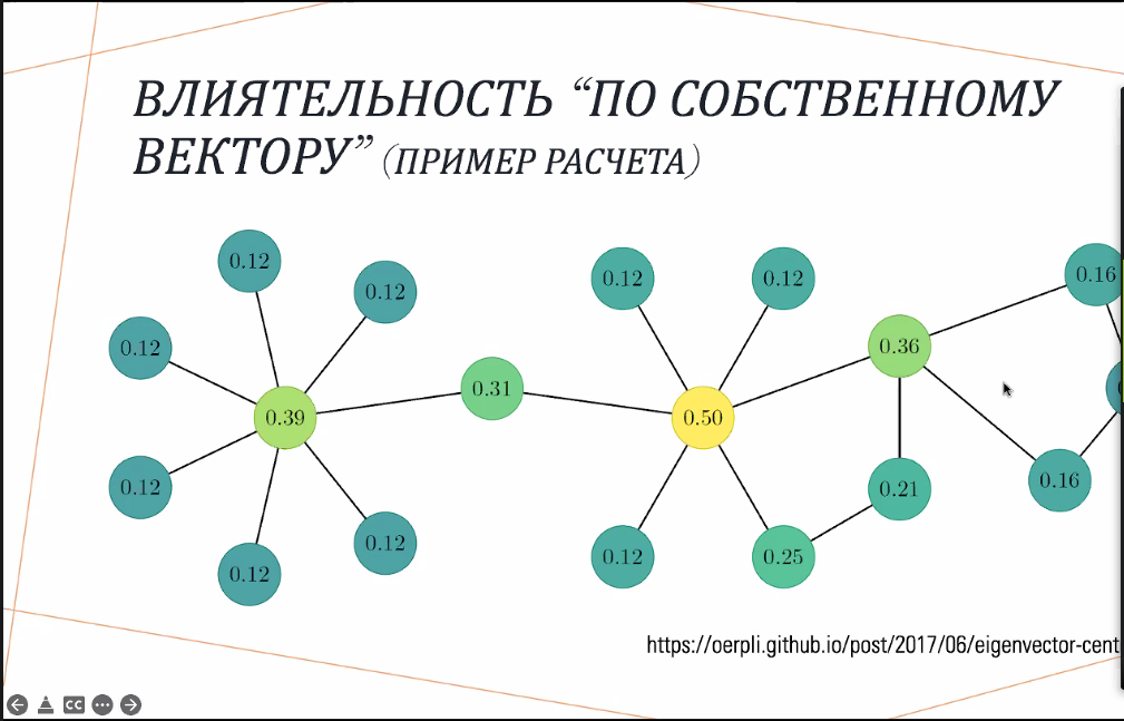 «Это влияние нельзя оценить просто числом подписчиков, здесь работает немного более сложный подход. Он как раз апеллирует к аппарату линейной алгебры… Влиятельность вершины (блогера – прим. ред.) определяется суммой влиятельности вершин (других инфлюенсеров – прим. ред.), которые на тебя подписаны», – пояснил старший научный сотрудник Института проблем управления РАН.