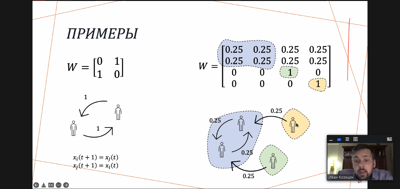 «Это модель очень простая, но вместе с тем она была эмпирически подтверждена во многих лабораторных исследованиях, в рамках которых следили, как люди меняют своё мнение. Более того, эта модель в какой-то степени провалидирована на онлайновых социальных сетях. Учёные проводили эксперименты, они смотрели, как меняется мнение людей, и сопоставляли данную динамику с моделью Дегроота. Оказалось, что она, действительно, неплохо описывает реальные процессы», – рассказал Иван Козицин.