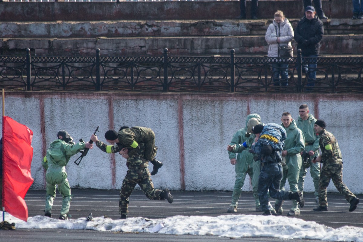 Затем участники соревнований продемонстрировали упражнение со штатным оружием. Этапы праздника были традиционными – это метание гранат, перетягивание каната, военизированная эстафета и др.