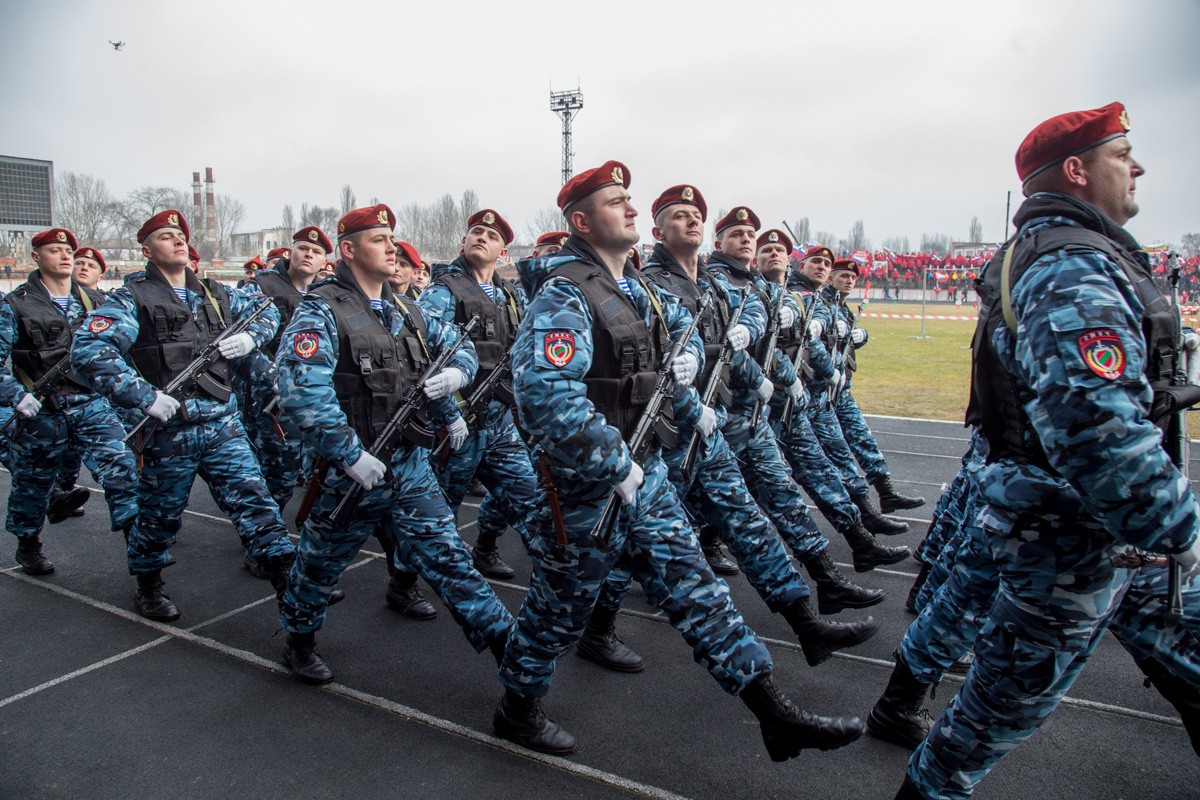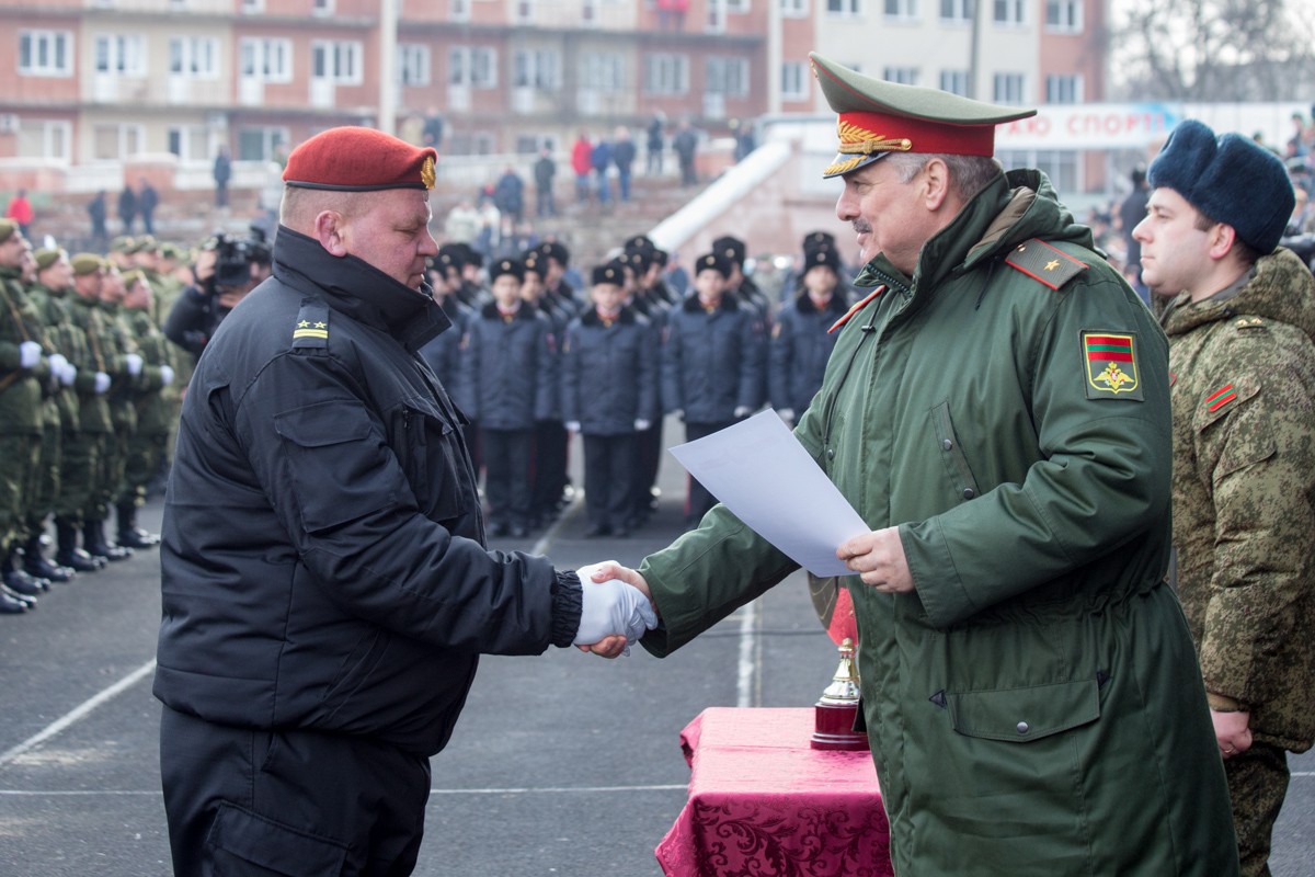 На центральной трибуне за всем действом наблюдал Президент Вадим Красносельский и руководители министерств-участников, начальник ОГРВ, первый Президент ПМР, депутаты.