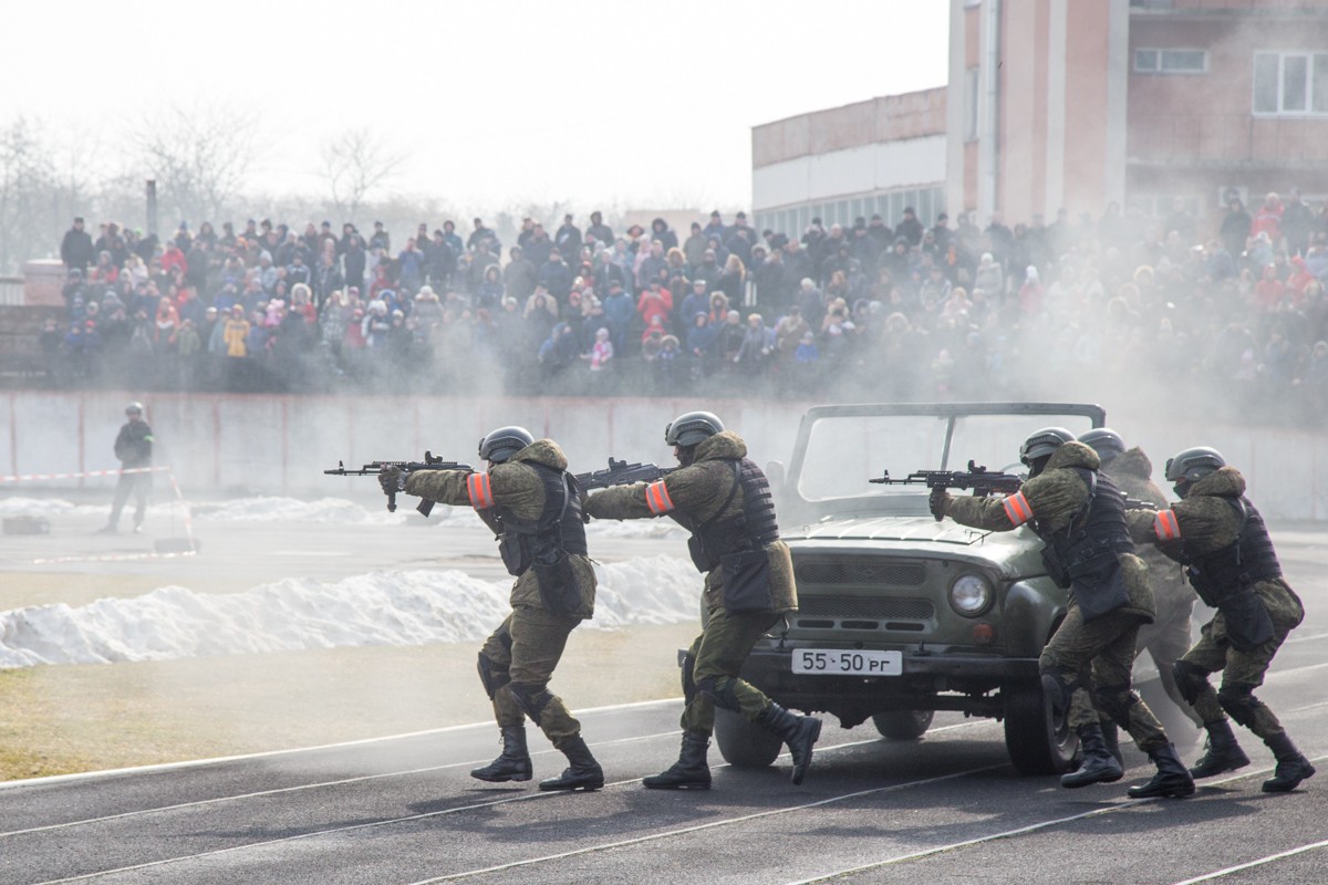 Также выступающие бойцы силовых ведомств показали уровень готовности к выполнению оперативной задачи (контртеррористической операции, выявлению груза с оружием на границе, противодействию диверсантам).