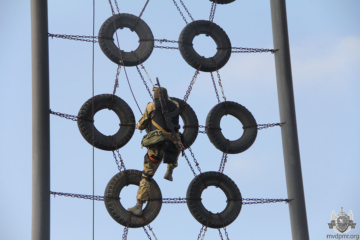 Упражнения следующего этапа триатлона предполагали штурм трёхэтажного здания, преодоление П-образной конструкции и подвесной переправы.