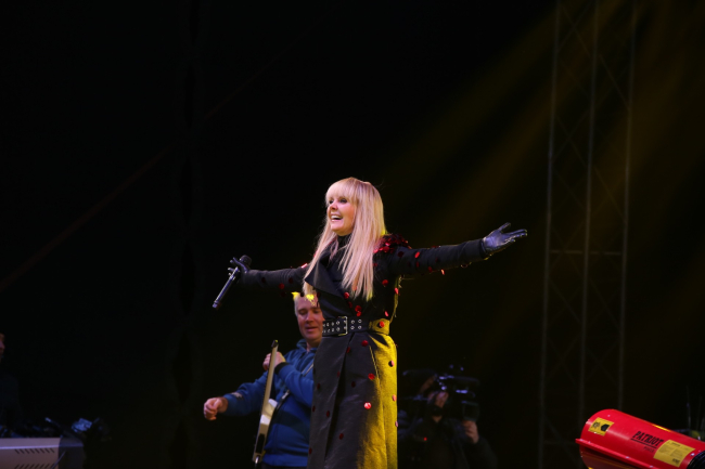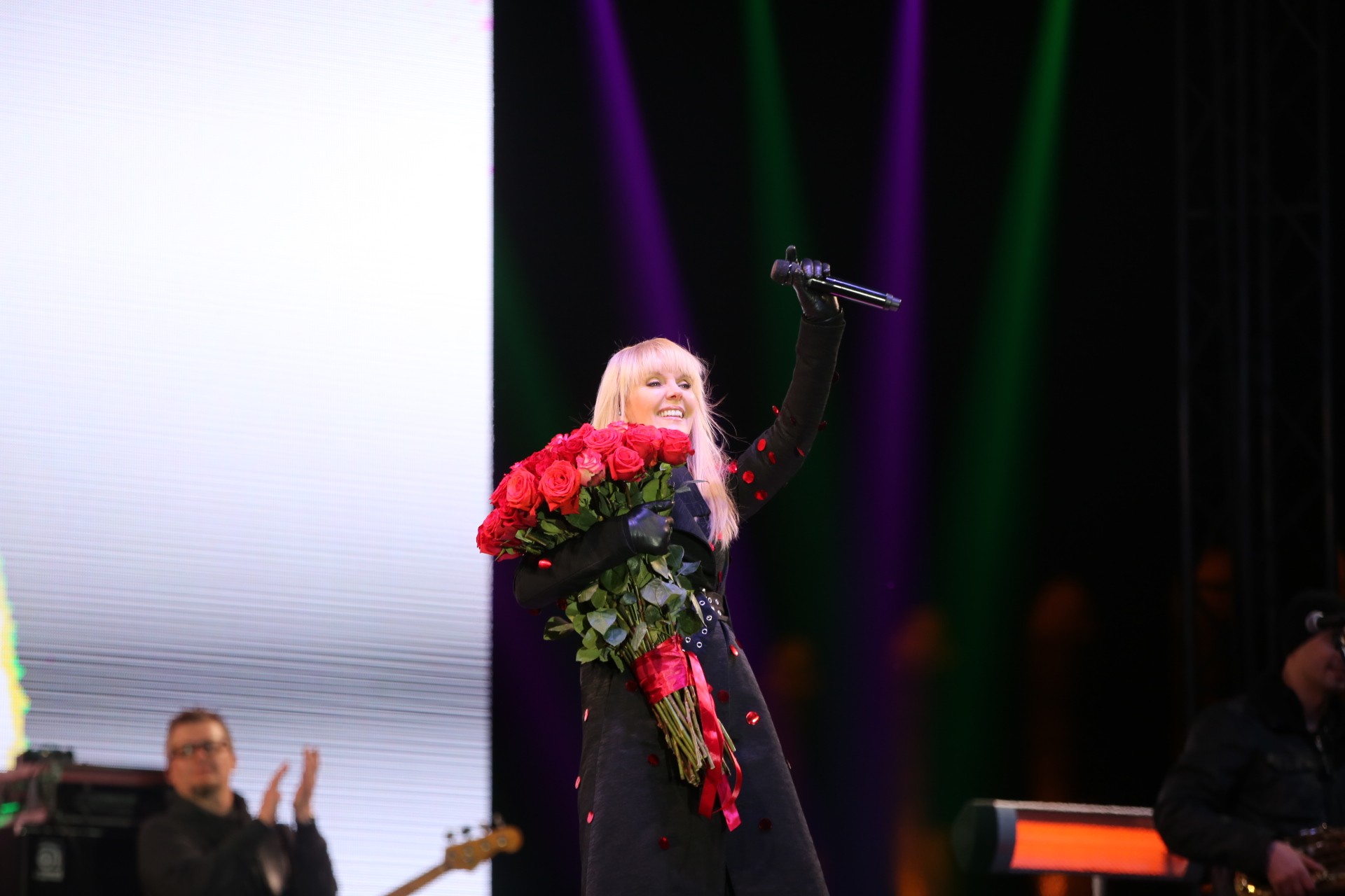 «Я давно мечтала приехать сюда. Здорово, что поводом стал этот мини-фестиваль, который приехал в вашу республику. Спасибо большое Президенту Евгению Шевчуку за то, что я здесь. Буду петь свои лучшие песни, так что вы подпевайте», - обратилась со сцены к многочисленным зрителям Валерия.