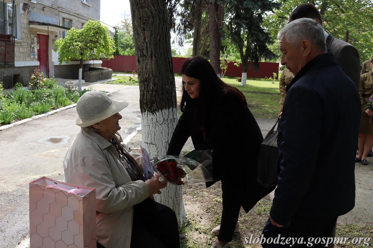 В Слободзее концертная агитбригада приехала к узнице концлагерей Вере Андреевне Ювченко. Со словами поздравления к ней обратились глава госадминистрации Василий Тищенко, председатель райгорсовета Татьяна Залевская, депутат Верховного Совета ПМР Павел Шинкарюк и другие.