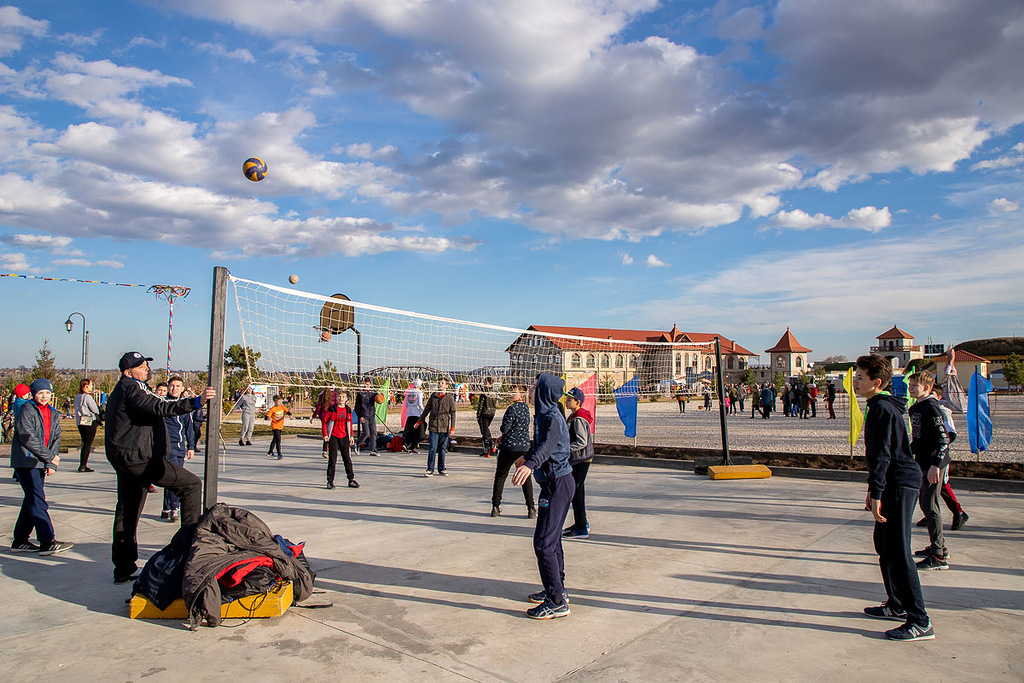 Так, спортивная зона была разделена на секции, представленные разными видами спорта: футболом, волейболом, уличным стритболом, настольным теннисом, голболом, боксом.
