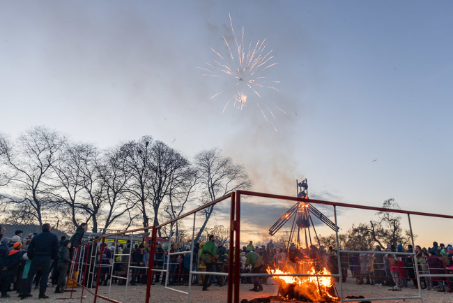 Повелители огня продемонстрировали собравшимся умение управлять огненной стихией, после чего подожгли чучело Масленицы. Под аплодисменты бендерчан и гостей города оно сгорело за считанные минуты, унеся с собой все заботы и проблемы прошлого года. По преданию яркий и пышный костер являлся предвестником удачного года.