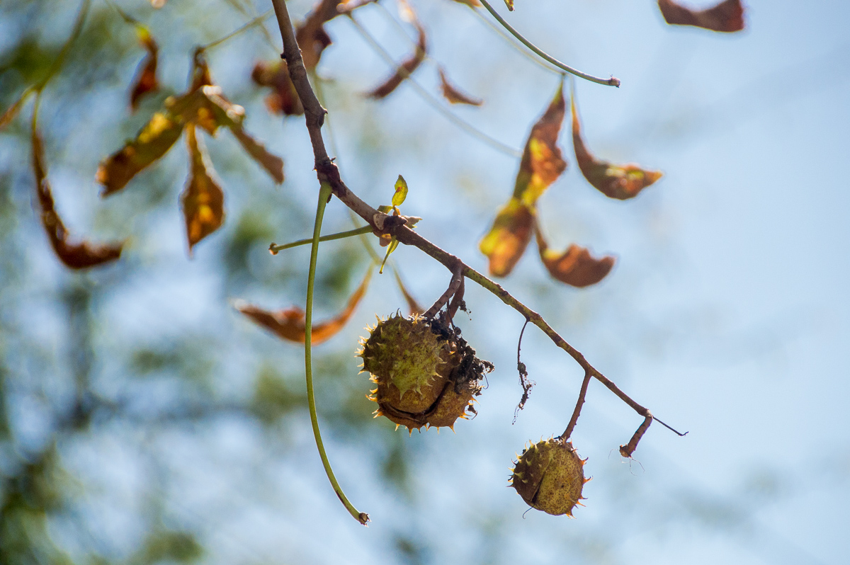 После летнего листопада вегетационный период у деревьев продолжается и наступает так называемое осеннее цветение – каштаны вновь обрастают молодой листвой.