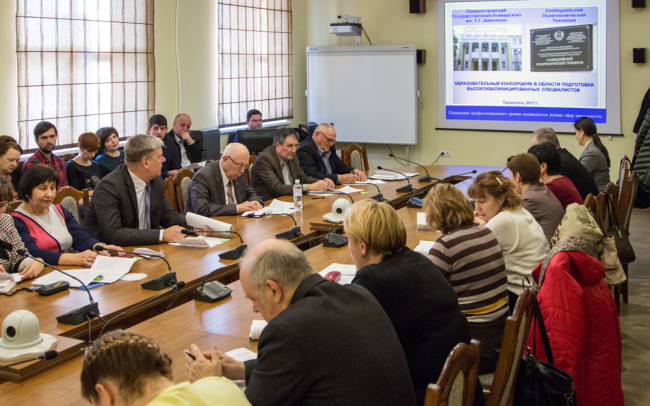По словам ректора ПГУ Степана Берила, главная цель консорциума – повысить взаимосвязь между учебными заведениями, объединить методические и учебно-преподавательские ресурсы, усилить материально-техническую базу, тем самым сконцентрировав технологию подготовки кадров для производственной сферы.