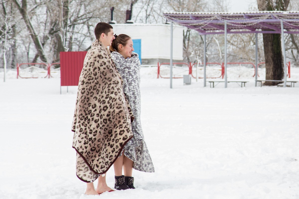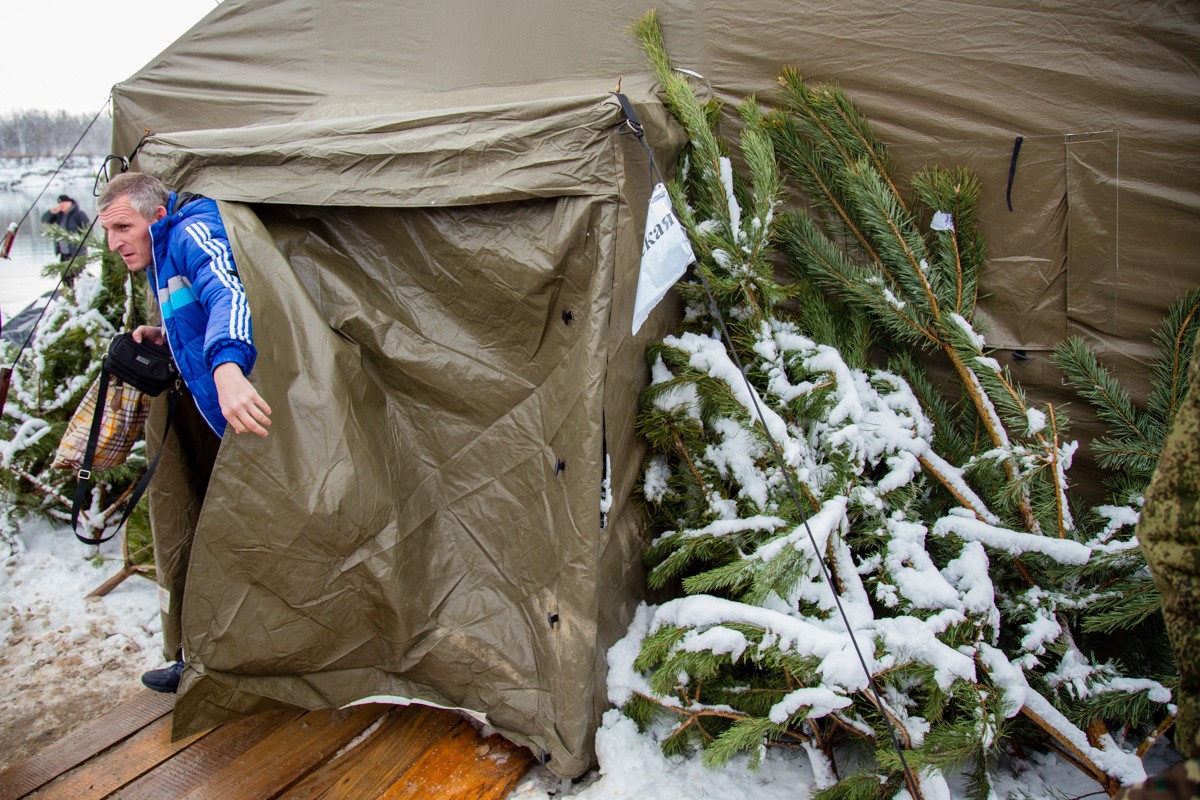 Для того чтобы горожане ощущали только приятные эмоции, были созданы все условия: в нескольких просторных палатках можно было не спеша переодеться, выпить горячего чаю, извар или глинтвейна. Для тех, кто хотел отогреться сразу же, с утра был готов чан с горячей водой. Впрочем, для некоторых и заснеженный пляж был вполне удобным местом как подготовки к купанию, так и переодевания после него.