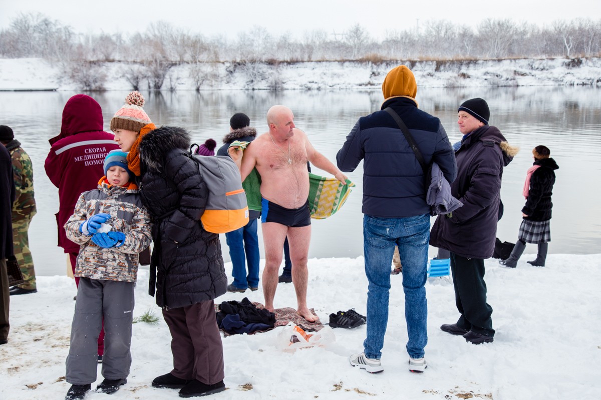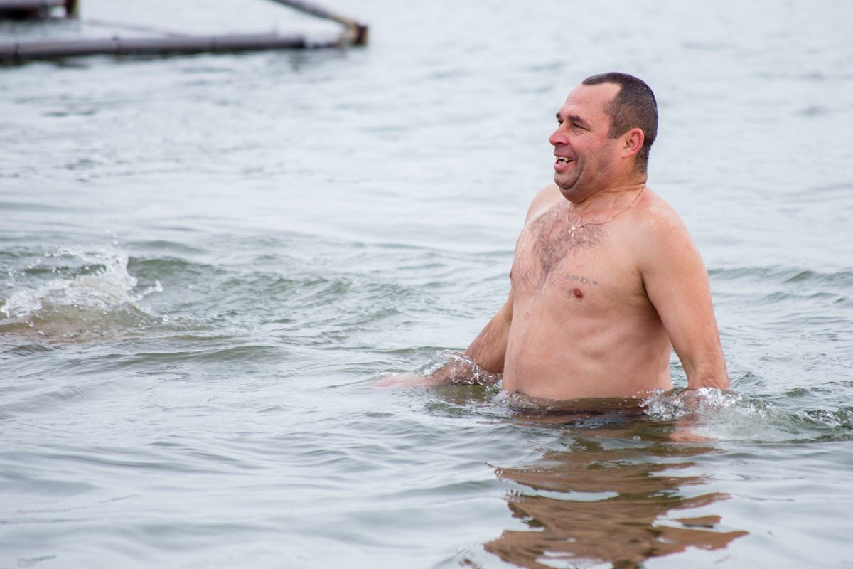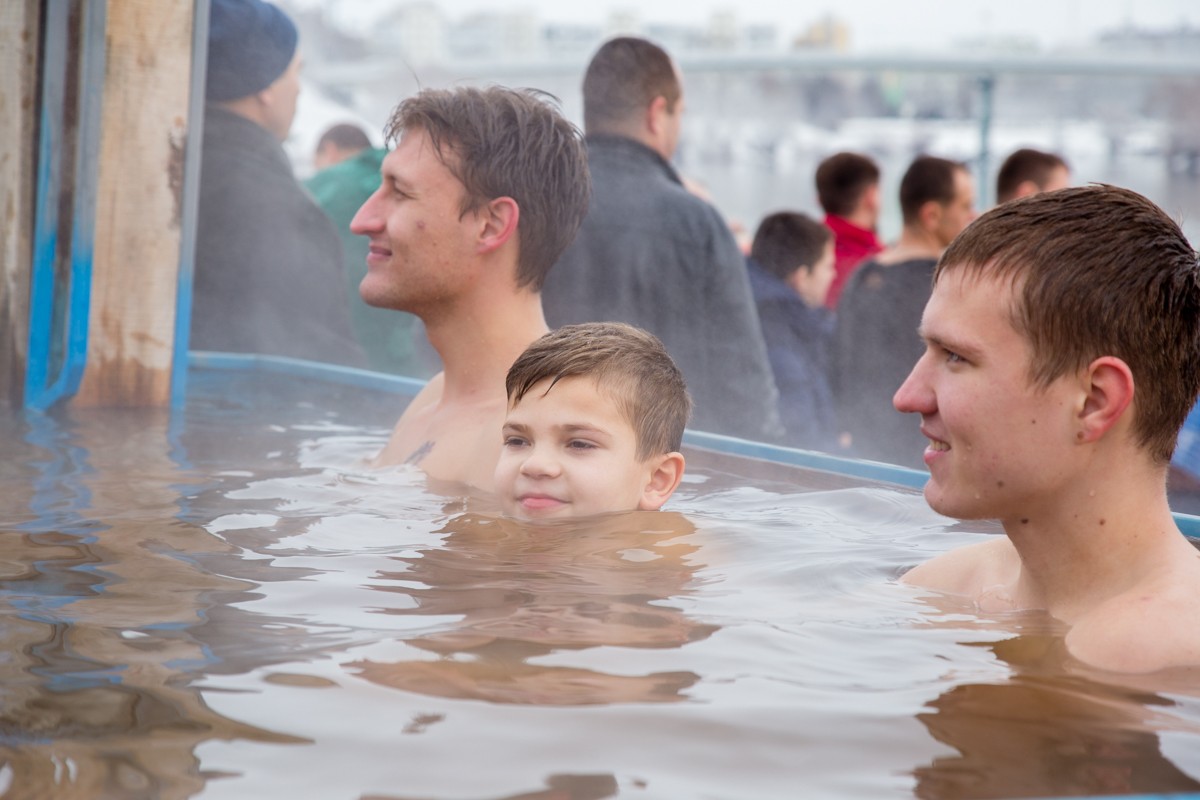 «Для нас это уже семейная традиция, в один год решили и пошли, и так вот уже пятый год ходим. Ощущения? Просто супер! Переживали немного, но всё равно всё преодолели, вода тёплая, в прошлом году холоднее было, после купания так хорошо!» – рассказала Наталья, пришедшая вместе с сыном Петром.