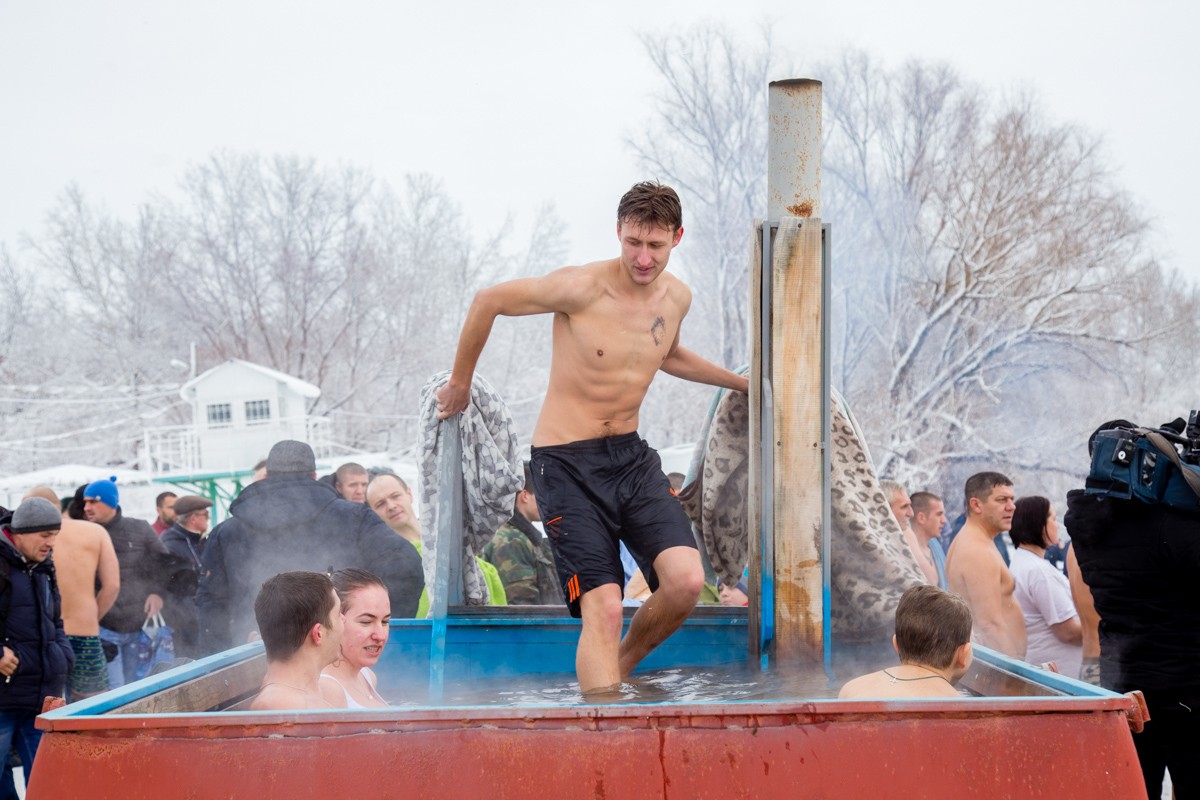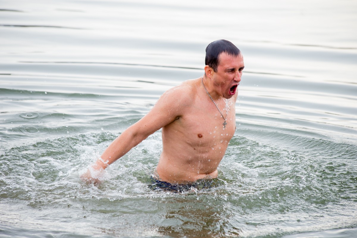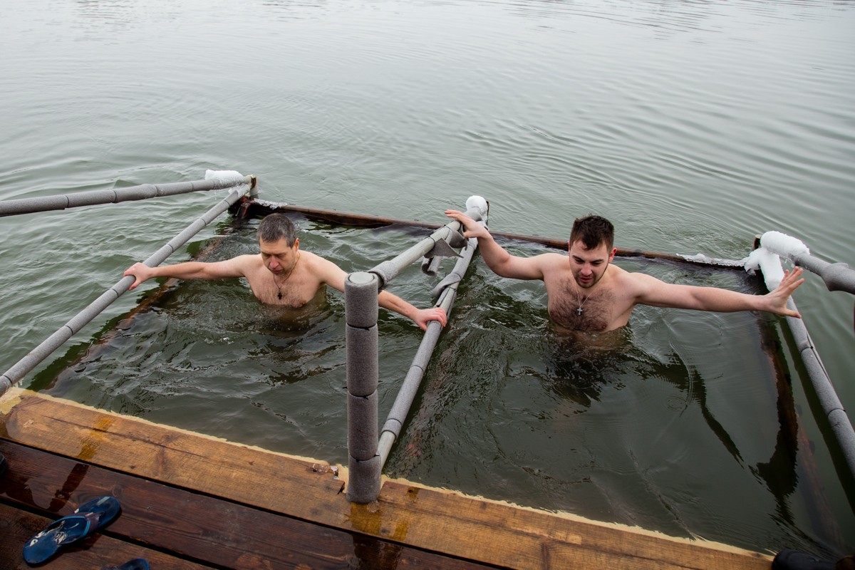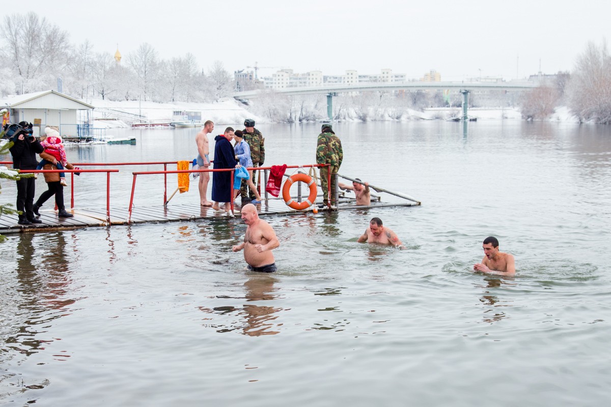 «Для нас это уже семейная традиция, в один год решили и пошли, и так вот уже пятый год ходим. Ощущения? Просто супер! Переживали немного, но всё равно всё преодолели, вода тёплая, в прошлом году холоднее было, после купания так хорошо!» – рассказала Наталья, пришедшая вместе с сыном Петром.