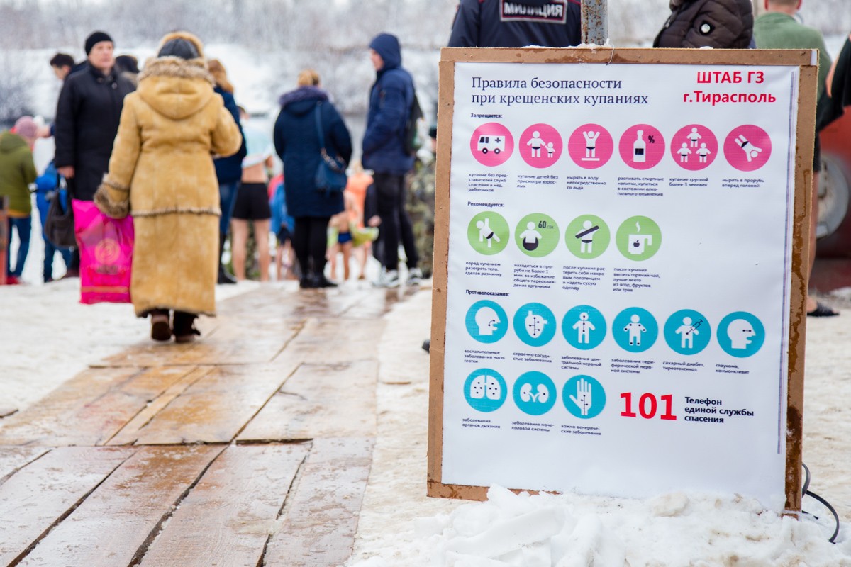 Примерно с полудня купания уже проводились по всем правилам: священнослужители Тираспольско-Дубоссарской епархии освятили воду и провели молебен. Также они напомнили о сути крещенских купаний, призвав больше вникать в смысле праздника, а не просто перенимать внешний обряд троекратного окунания в освящённую воду.