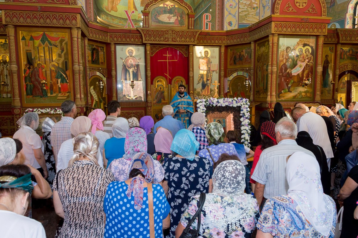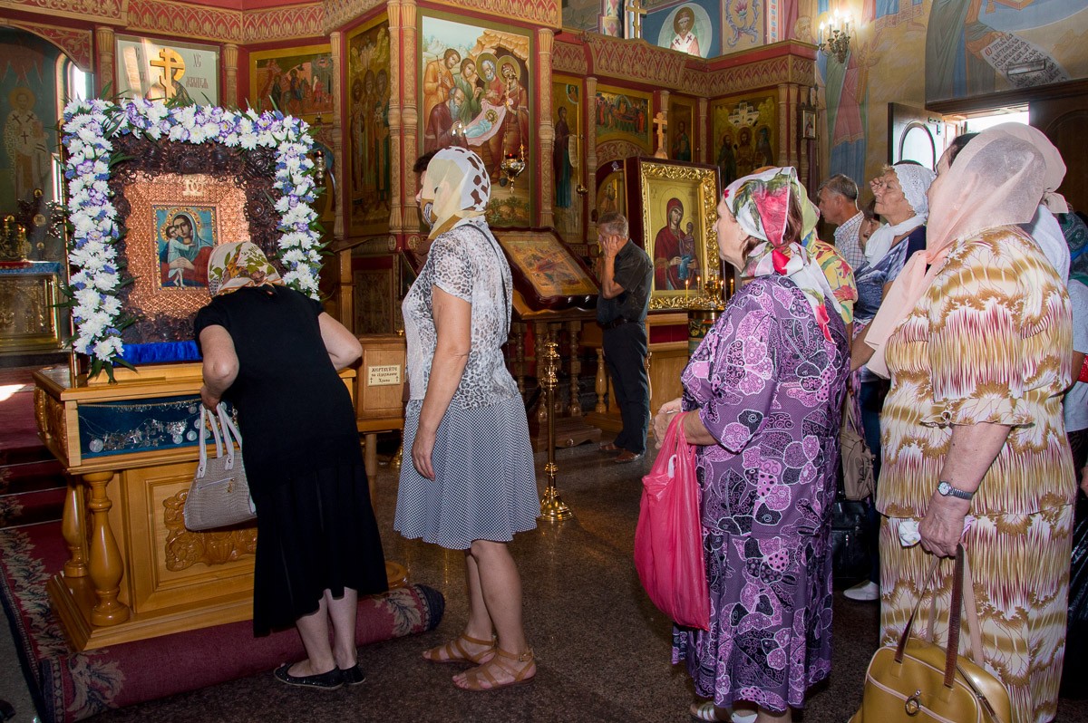 В завершение крестного хода в ограде собора был совершен молебен перед чтимой ныне иконой Божией Матери, после чего было пропето величание и провозглашено многолетие.
