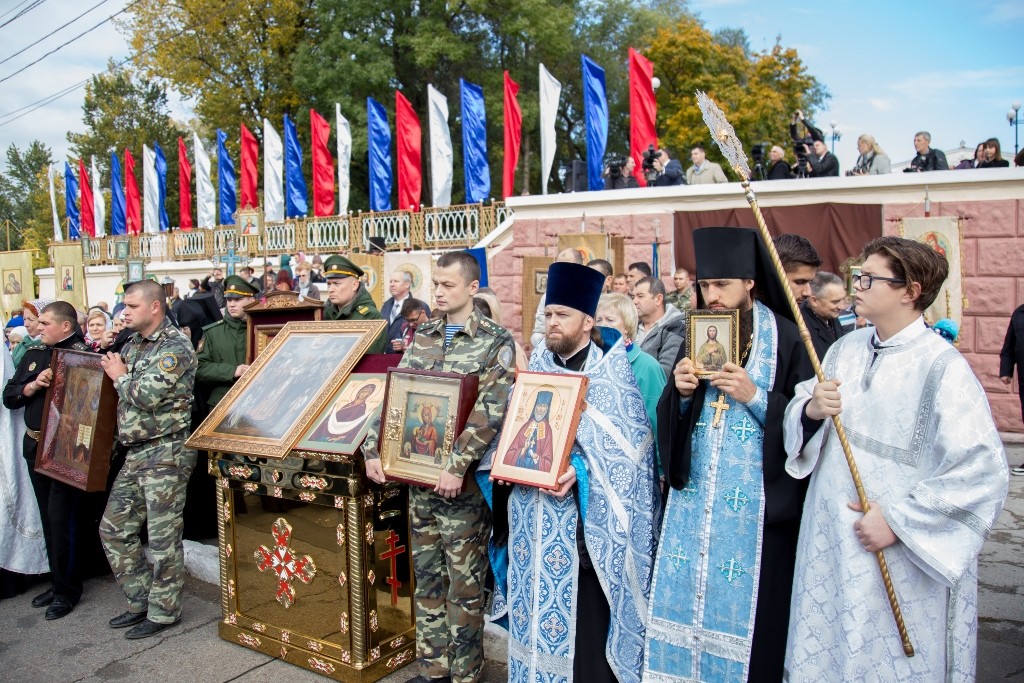 Завершающей его точкой стала центральная площадь Тирасполя, на которой состоялся молебен. О процветании столицы и здравии тираспольчан молились архиепископ Тираспольский и Дубоссарский Савва, руководители, жители и гости города и республики, духовенство, члены общественных организаций, военнослужащие, курсанты, суворовцы и кадеты.