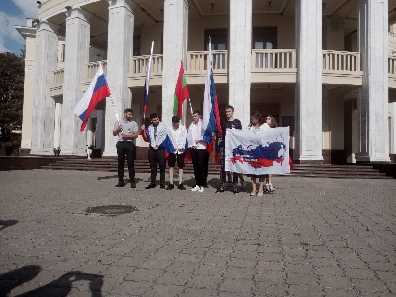 Тирасполь, 22 августа. /Новости Приднестровья/. В Контактном центре по взаимодействию с Россотрудничеством Приднестровского госуниверситета прошёл круглый стол, посвященный Дню Государственного флага РФ. Участники молодёжных организаций подготовили лекцию, посвященную истории триколора, провели тематическую викторину и устроили флешмоб с российскими флагами.