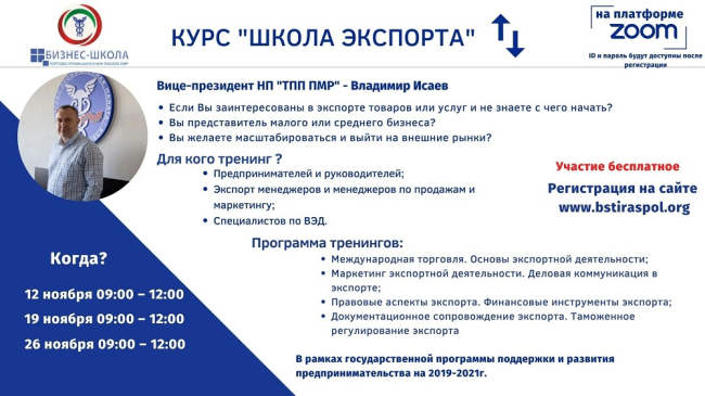 Тирасполь, 2 ноября. /Новости Приднестровья/. Торгово-промышленная палата ПМР сообщает о переносе курса «Школа экспорта» на ноябрь.